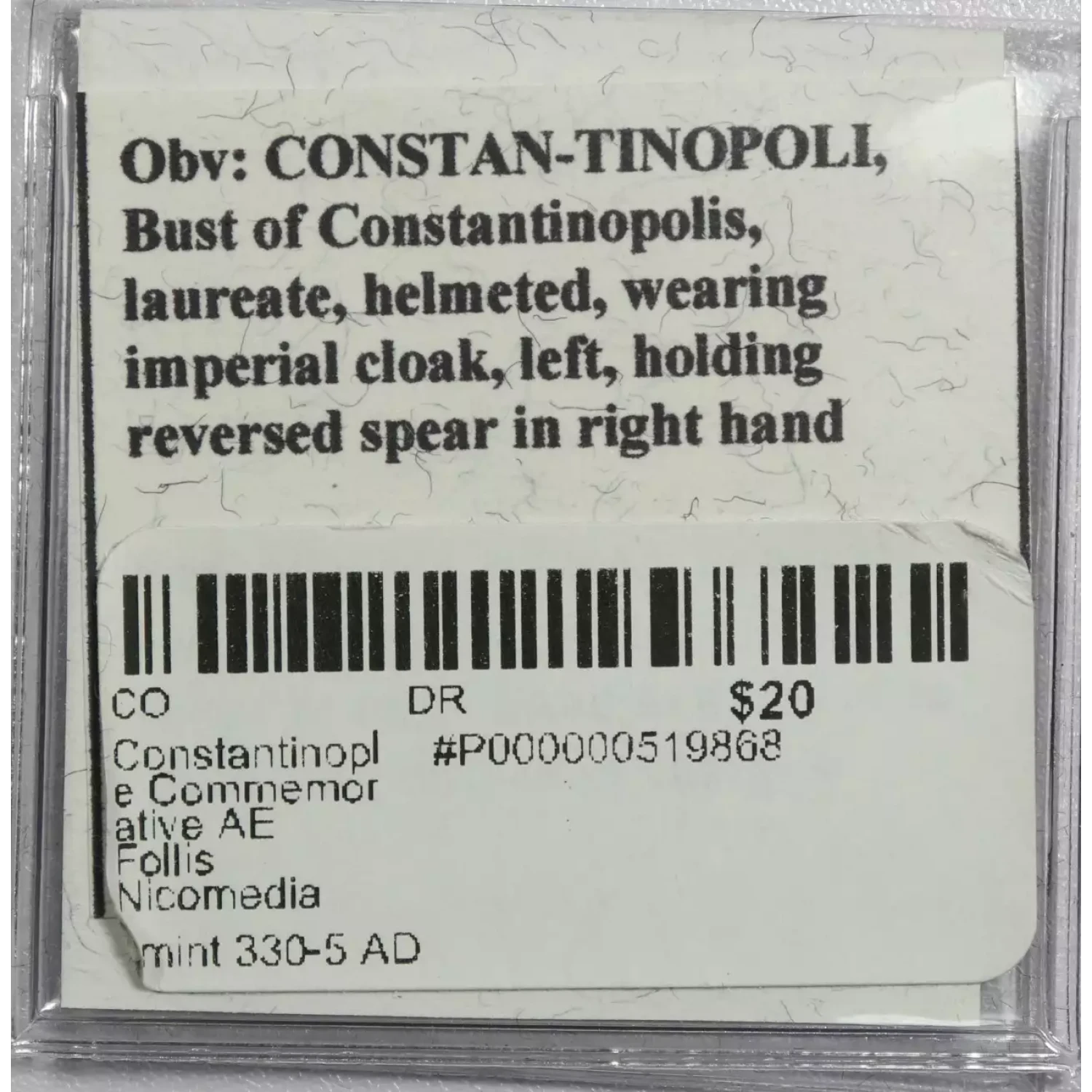 | Year | Constantinople Commemorative AE Follis Nicomedia |
