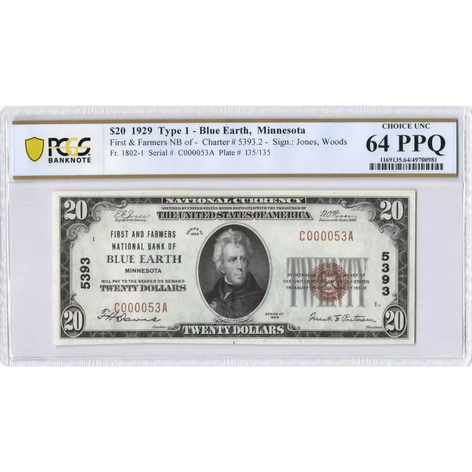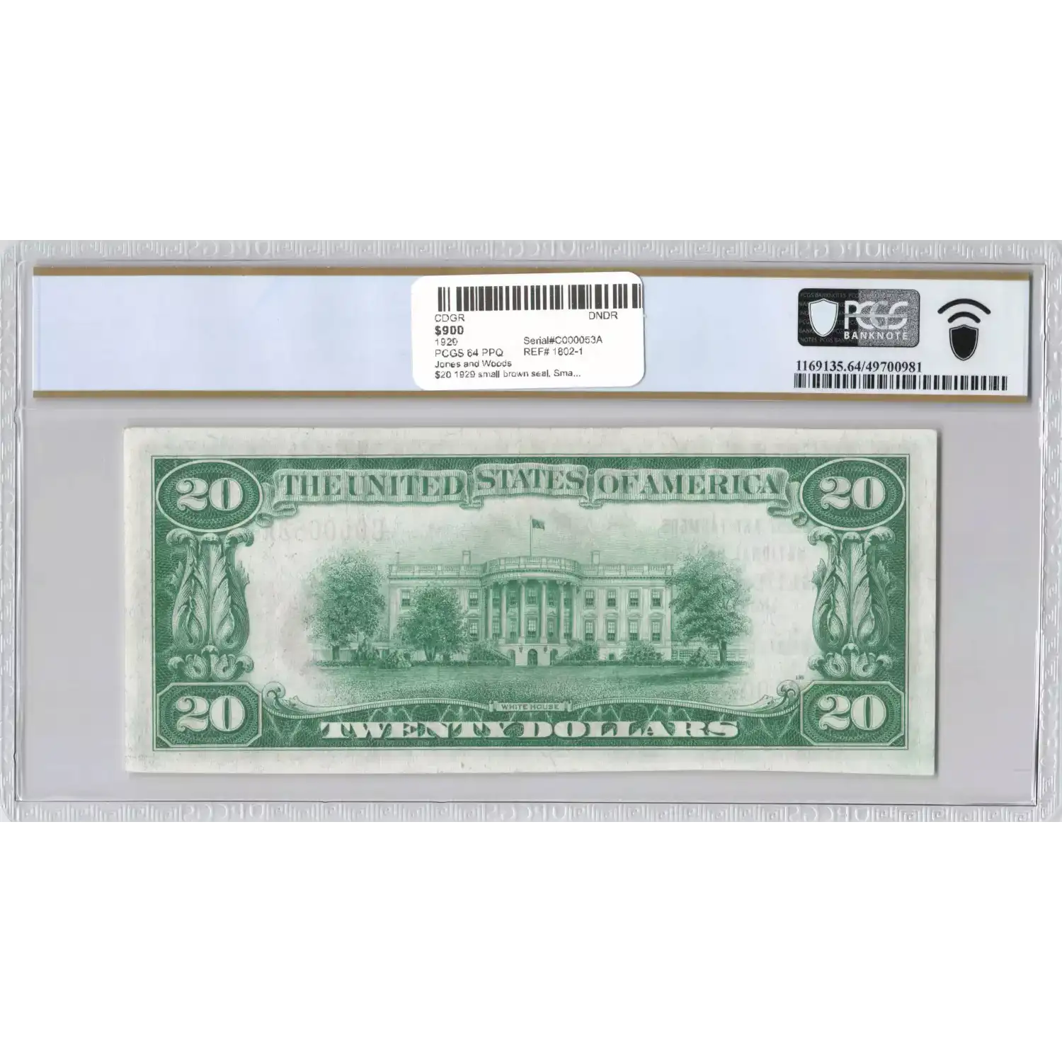 $20 1929 small brown seal. Small National Bank Notes 1802-1