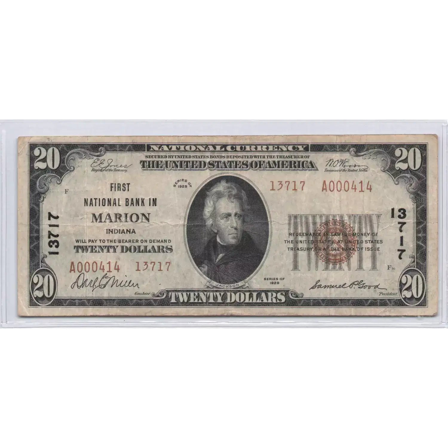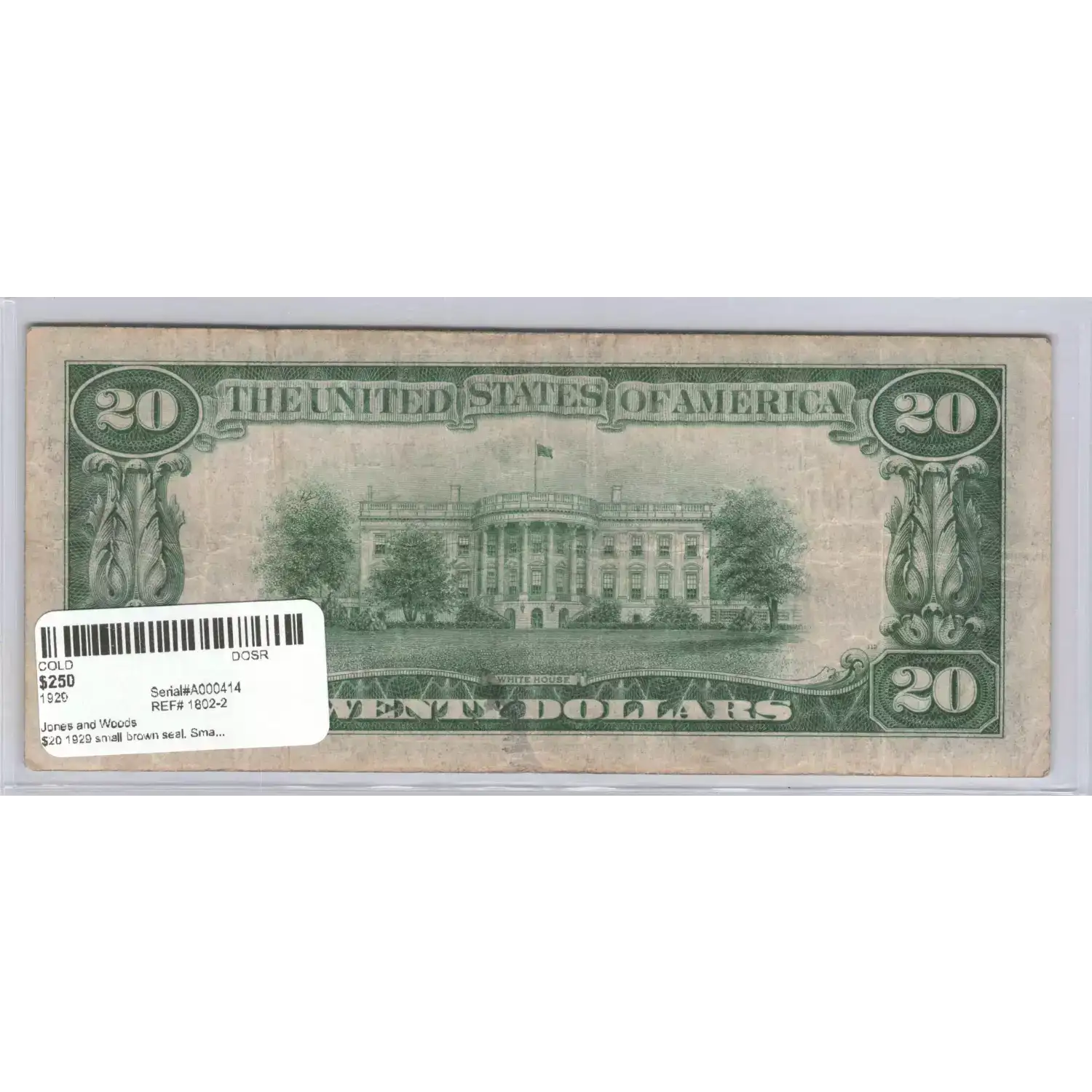 $20 1929 small brown seal. Small National Bank Notes 1802-2