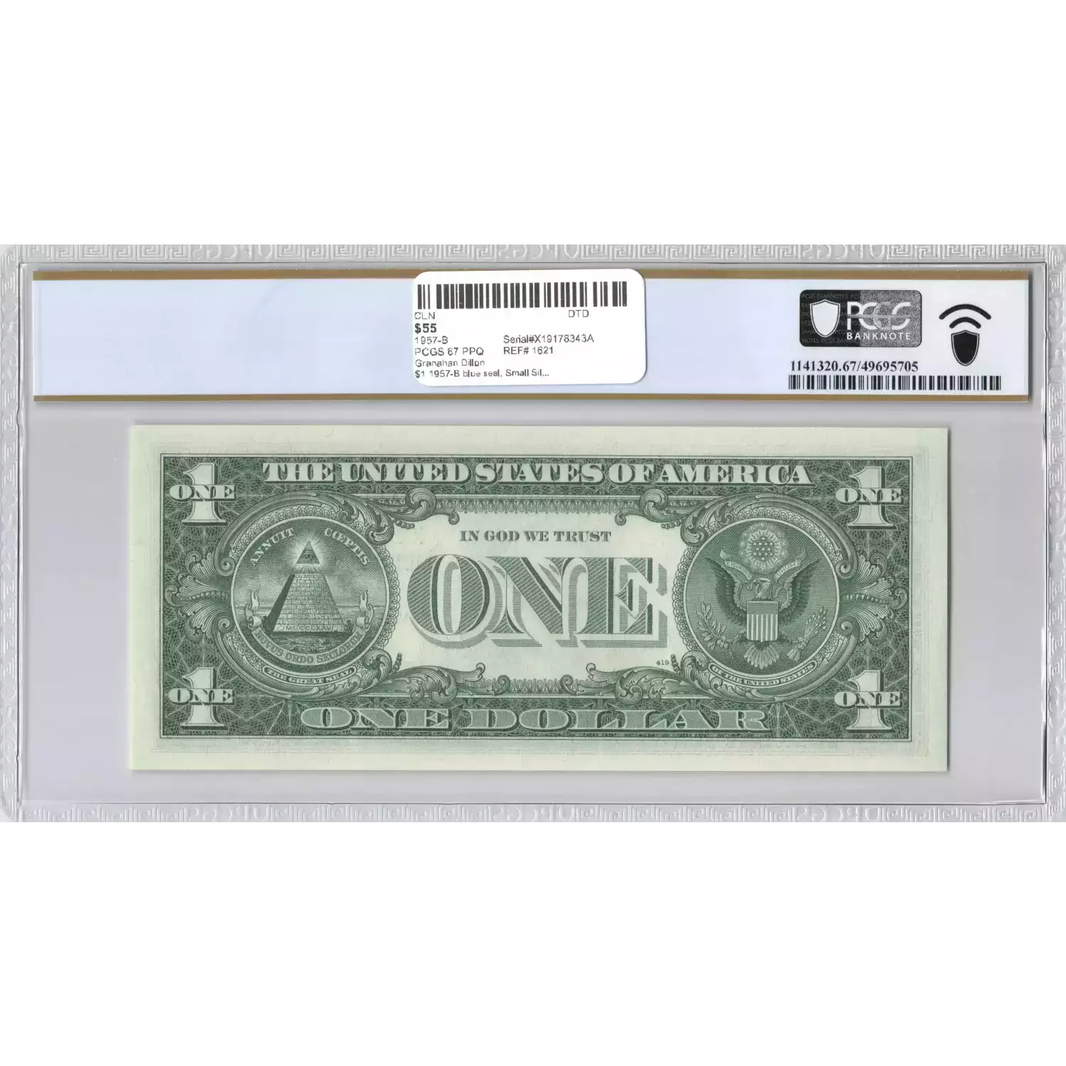 $1 1957-B blue seal. Small Silver Certificates 1621