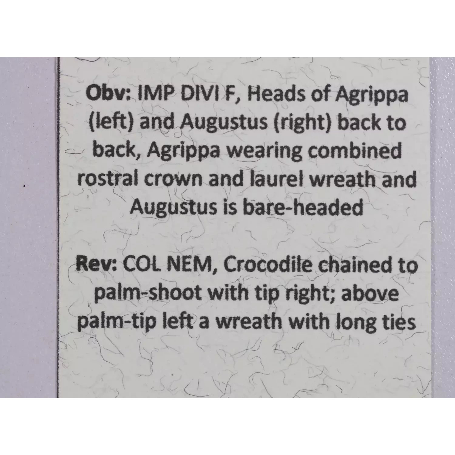 | Year | Augustus & Agrippa AE As 20-10 BC Nemausus |