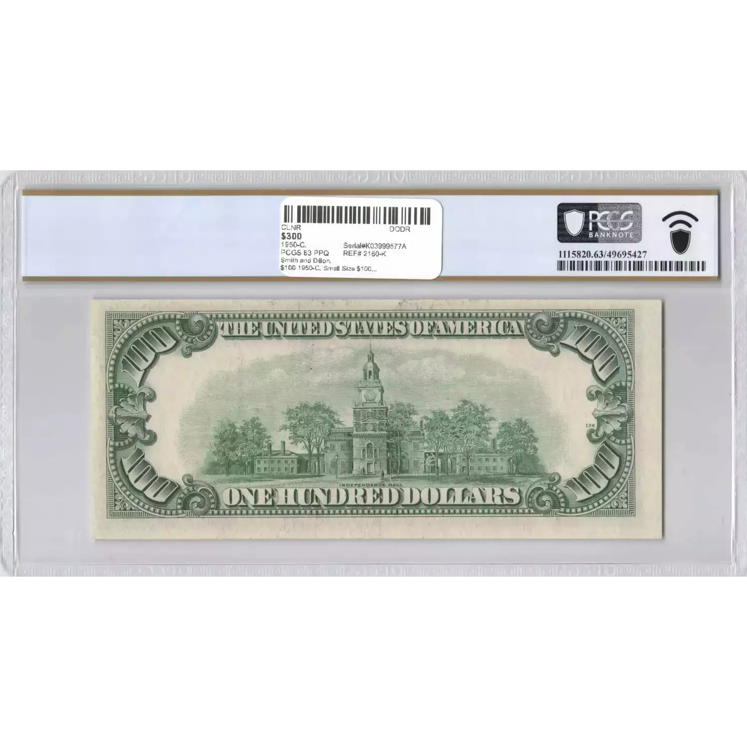 $100 1950-C. Small Size $100 Federal Reserve Notes 2160-K