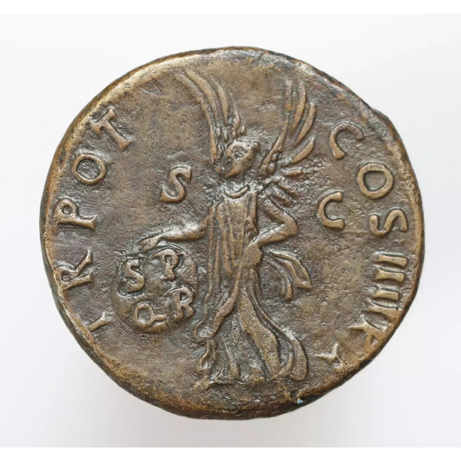 Trajan AE As Rome mint 101-2 AD Victory w/ shield Ancient Roman Coin