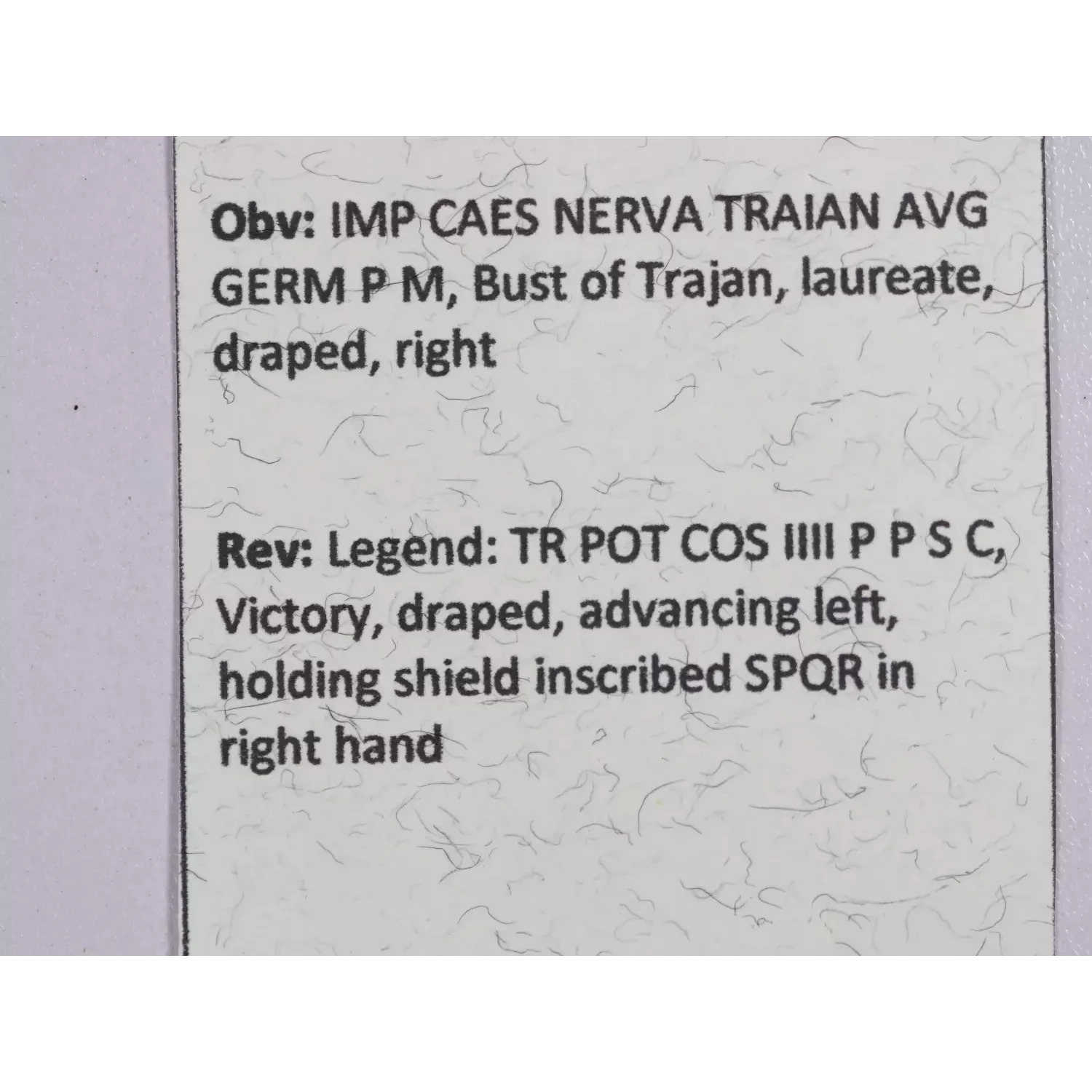 | Year | Trajan AE As Rome mint 101-2 AD Victory w/ shield |