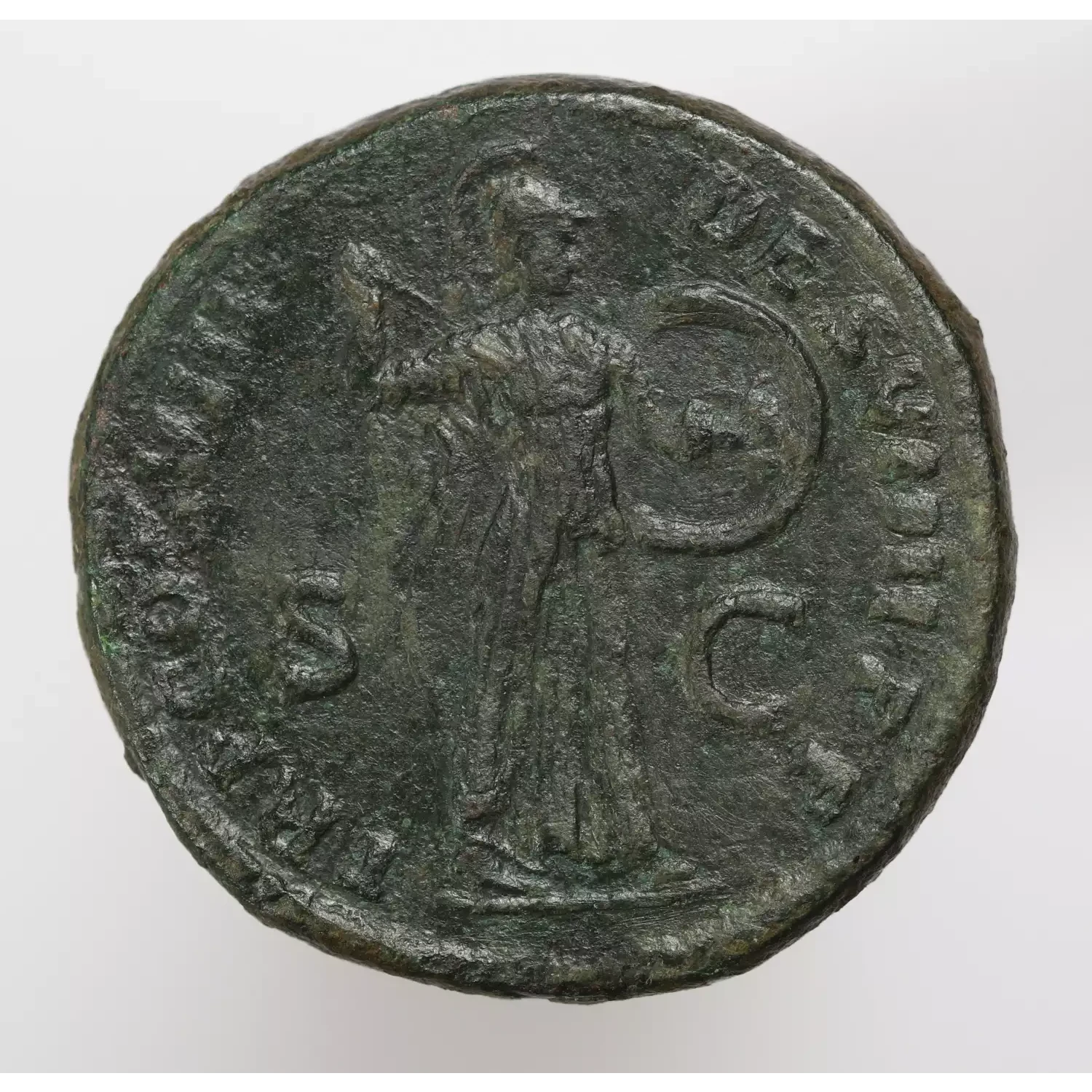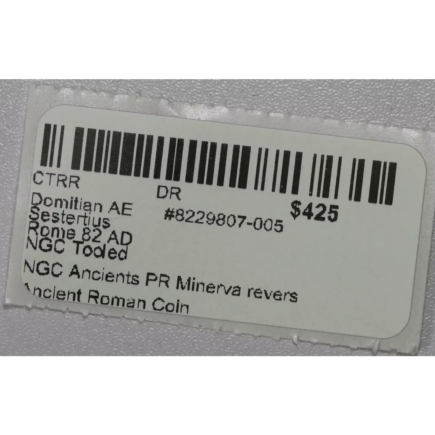 Domitian AE Sestertius Rome 82 AD NGC Tooled Ancient Roman Coin NGC Ancients PR Minerva reverse