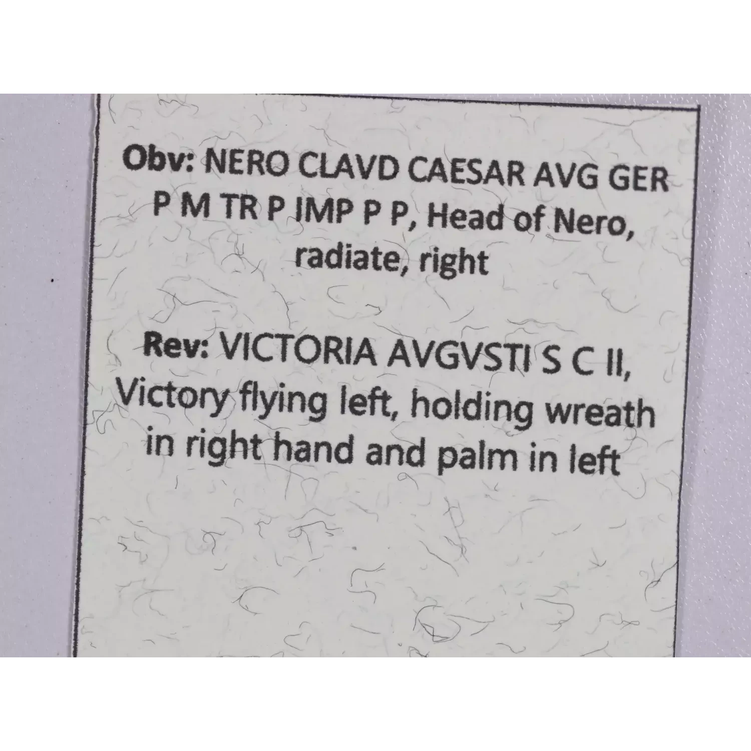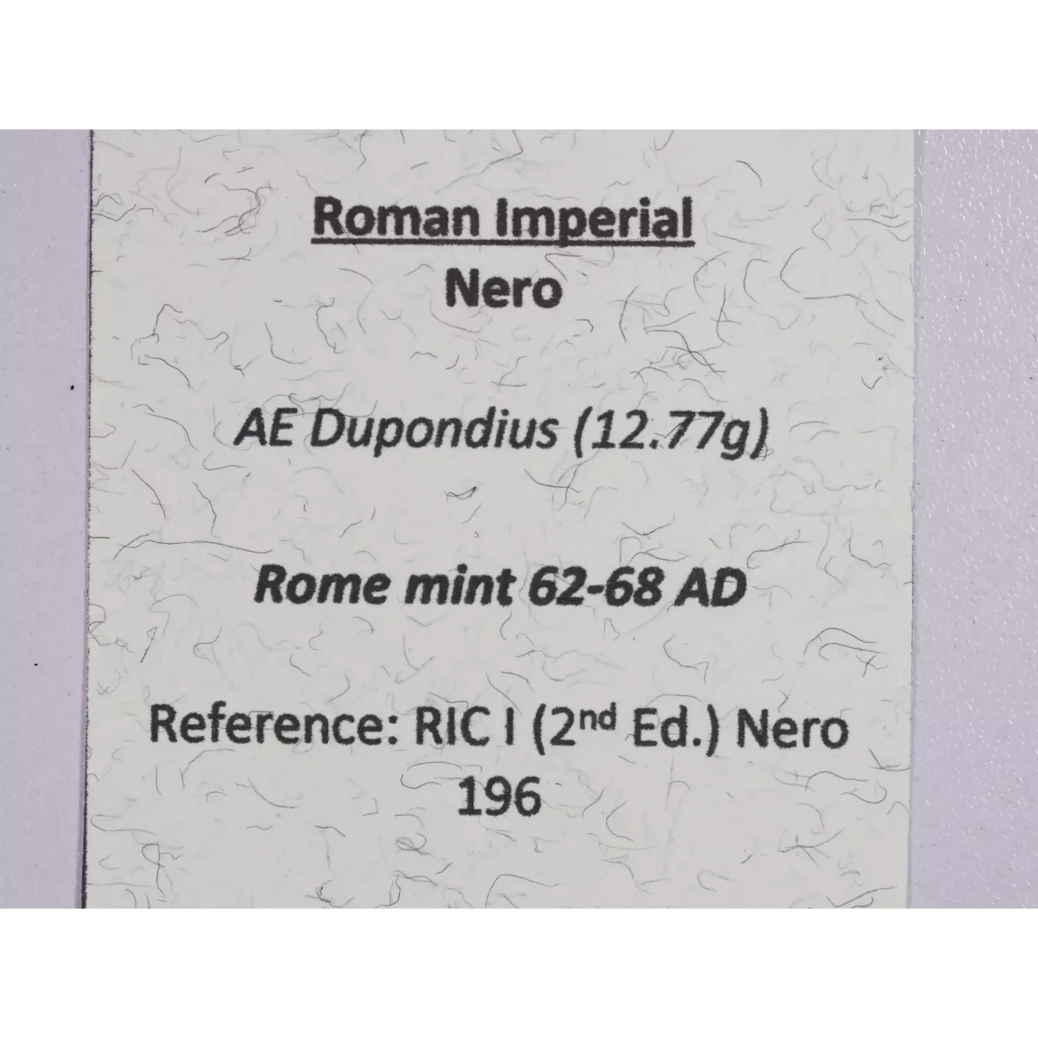 | Year | Nero AE Dupondius Rome mint 62-68 AD |