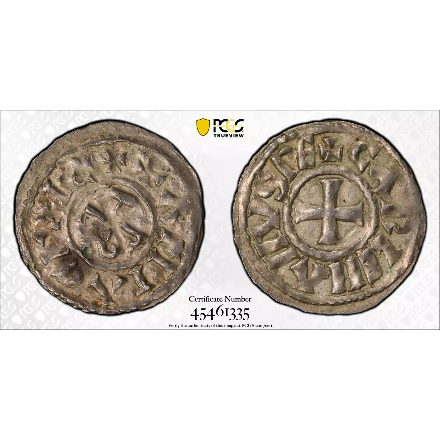 France Carloman II AR Denier PCGS AU55 Arles mint Medieval Coin PCGS AU-55 Higher grade than Tyrant Col.