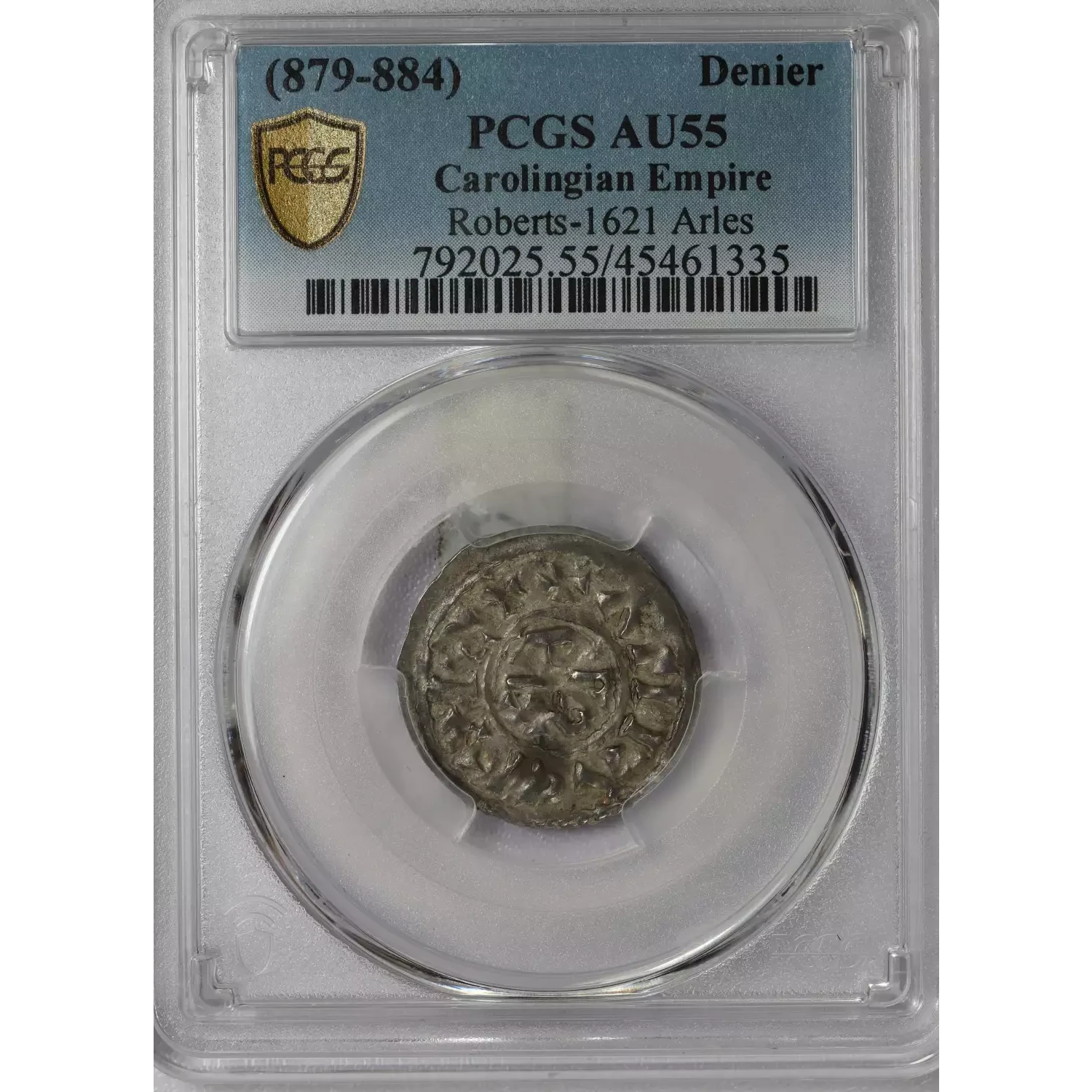 | Year | France Carloman II AR Denier PCGS AU55 Arles mint |