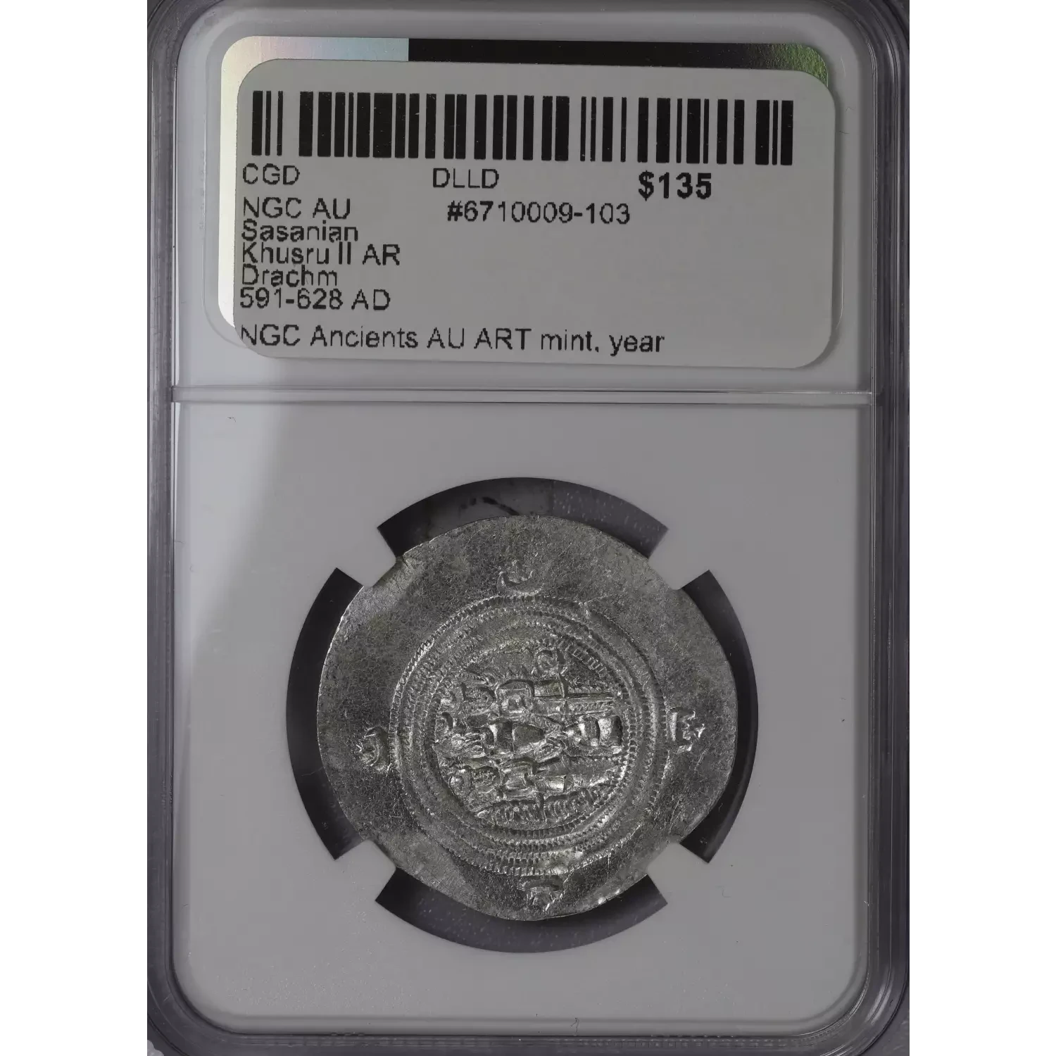 | Year | NGC AU Sasanian Khusru II AR Drachm 591-628 AD |