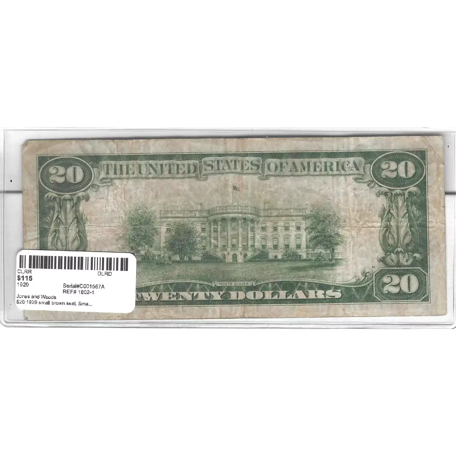 $20 1929 small brown seal. Small National Bank Notes 1802-1