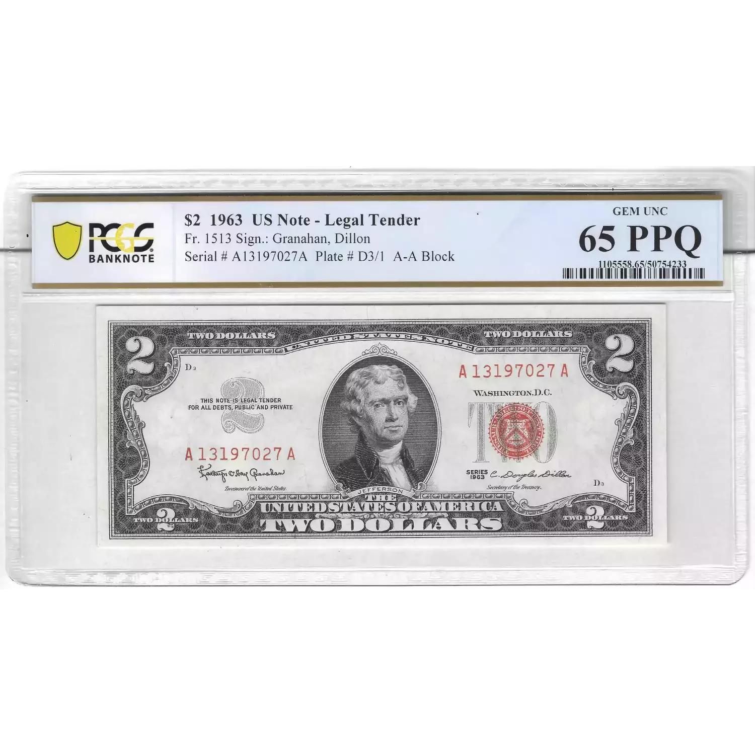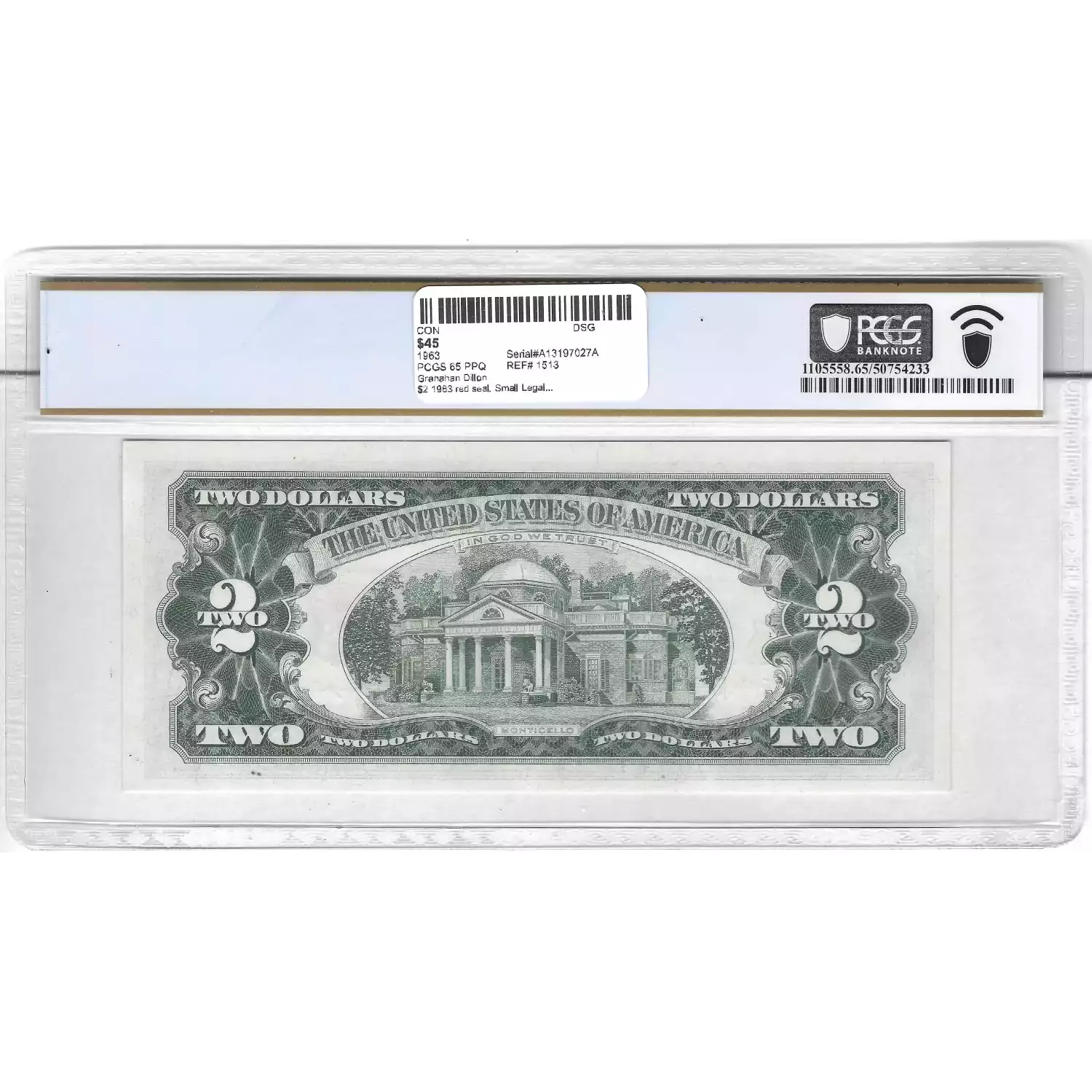 $2 1963 red seal. Small Legal Tender Notes 1513