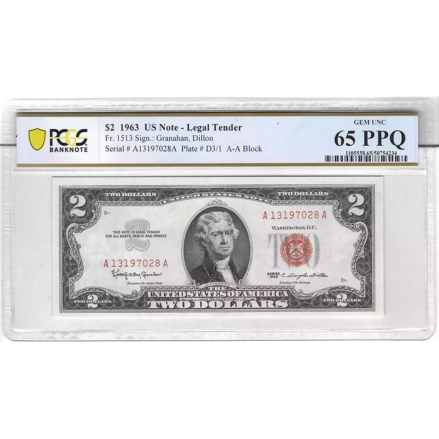 $2 1963 red seal. Small Legal Tender Notes 1513