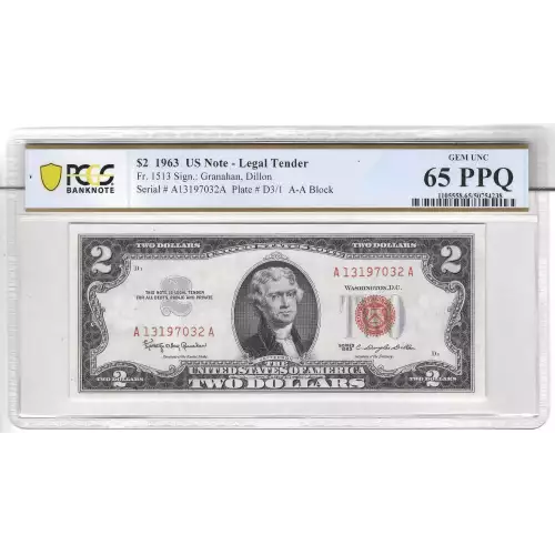 $2 1963 red seal. Small Legal Tender Notes 1513
