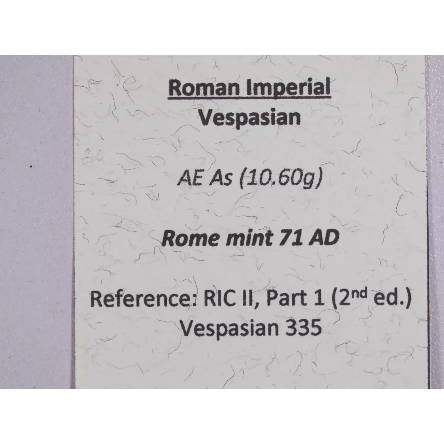 | Year | Vespasian AE As Rome 71 AD Naval Victory reverse |