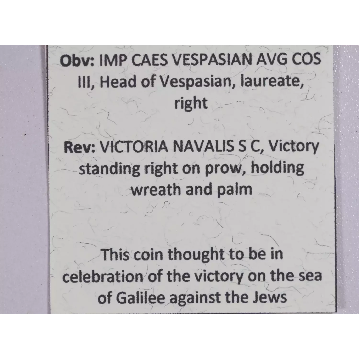 Vespasian AE As Rome 71 AD Naval Victory reverse Ancient Roman Coin Sea of Galilee victory?