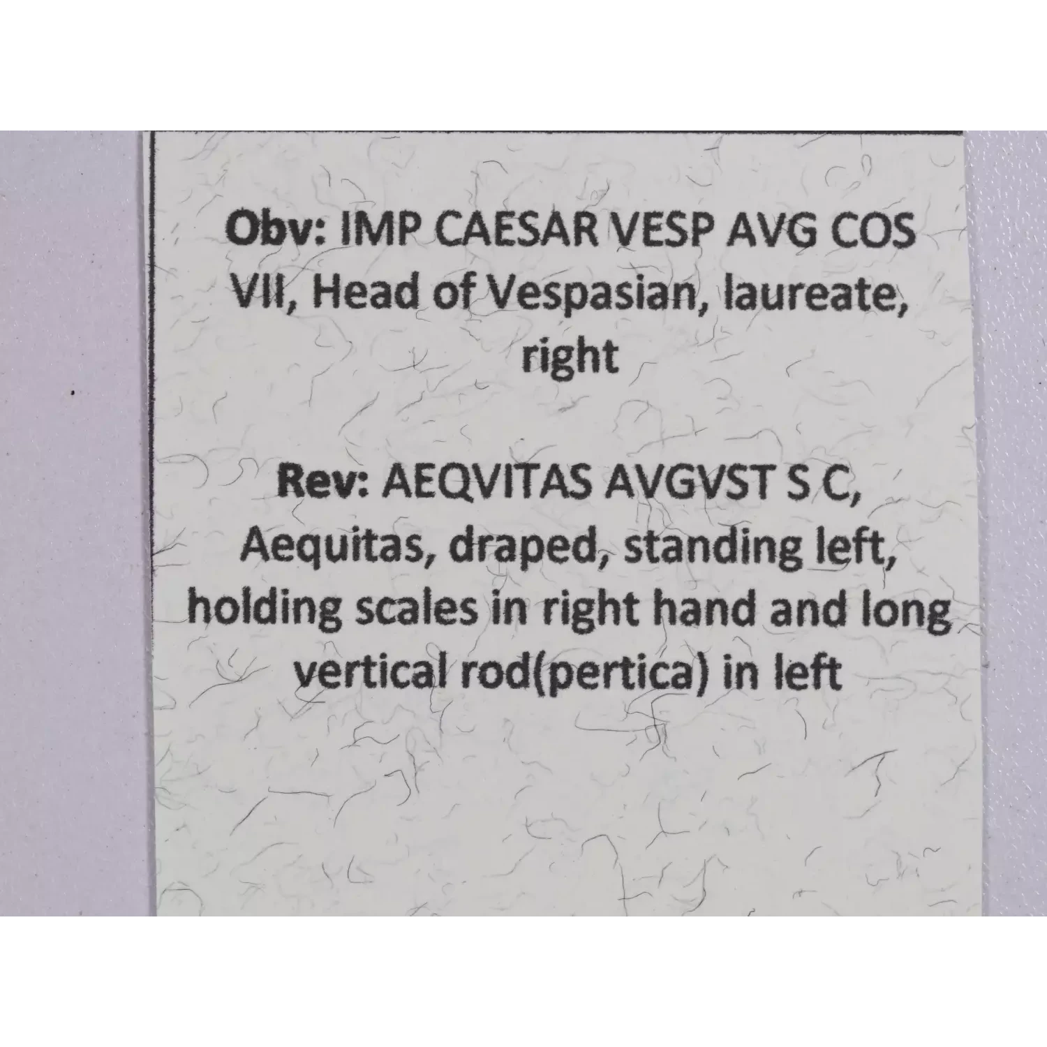 | Year | Vespasian AE As Rome 76 AD Aequitas reverse |