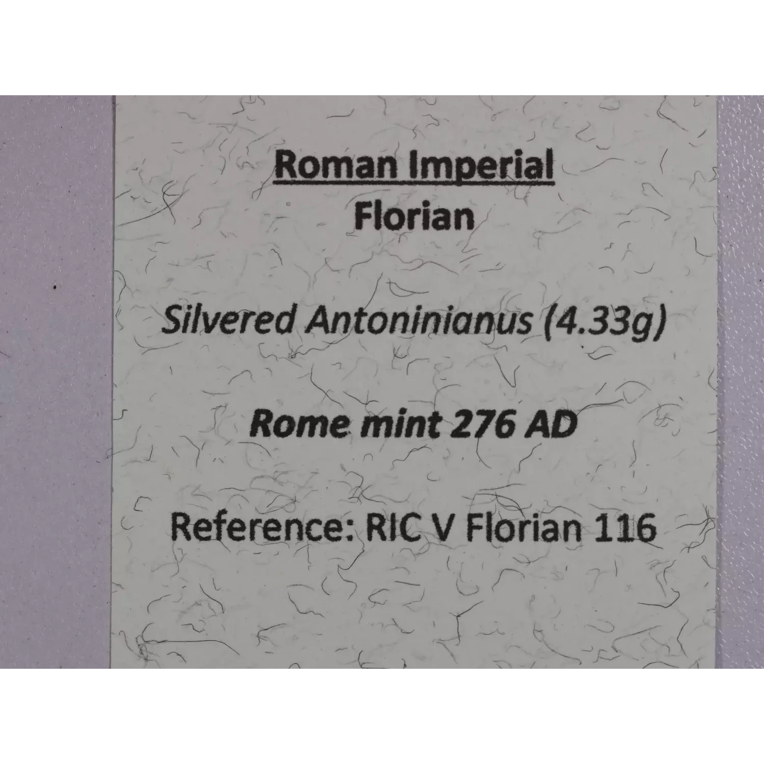 | Year | Roman Imperial Florian Silver Ant. Cyzicus mint 276 AD |
