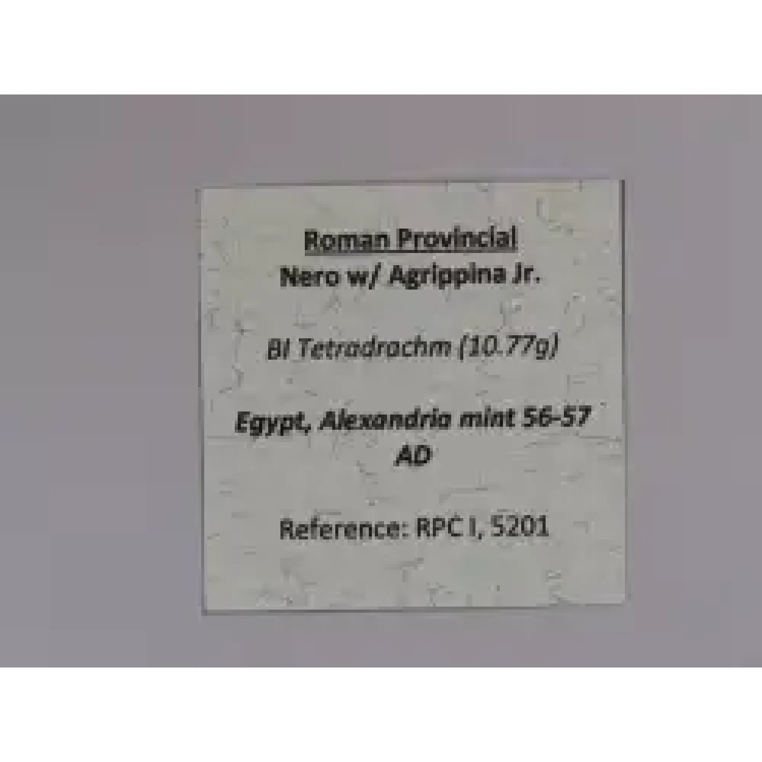 | Year | Roman Provincial Nero BI Tetradrachm Alexandria mint56/7 AD |