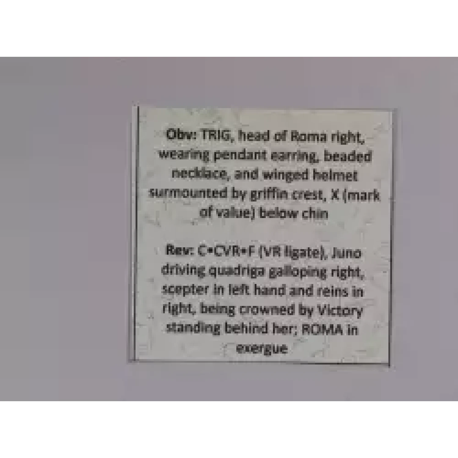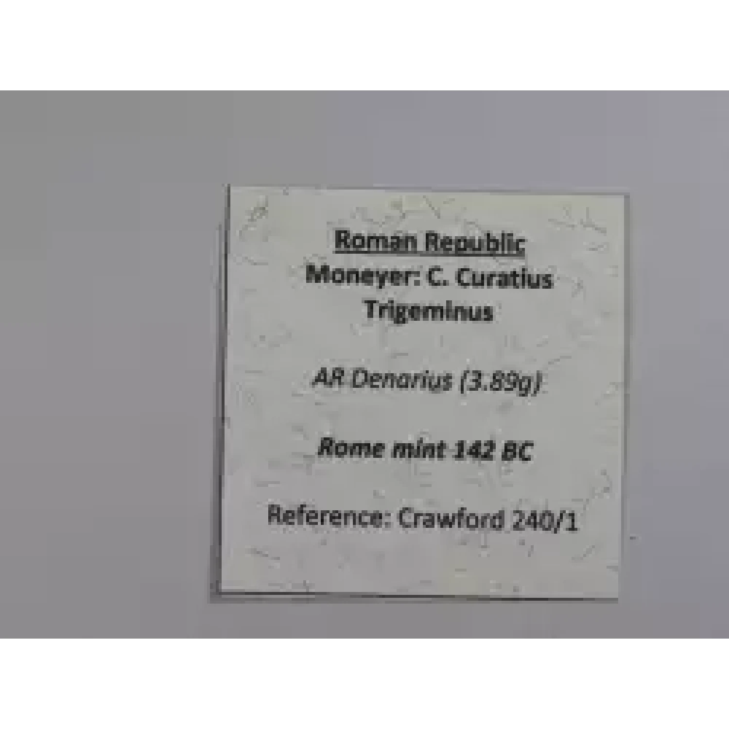 | Year | Roman Republic C. Curatius Trigeminus AR Denarius |