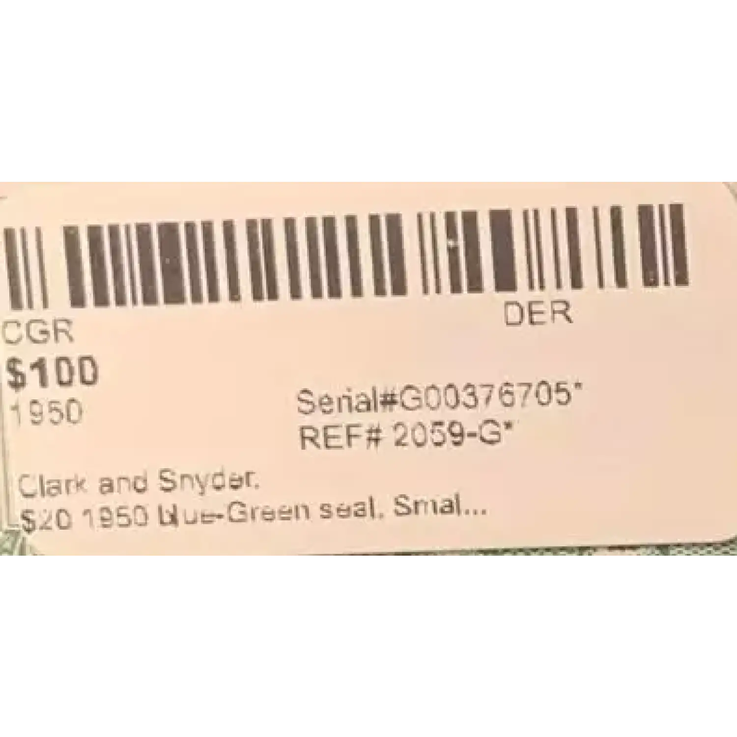 $20 1950 blue-Green seal. Small Size $20 Federal Reserve Notes 2059-G*