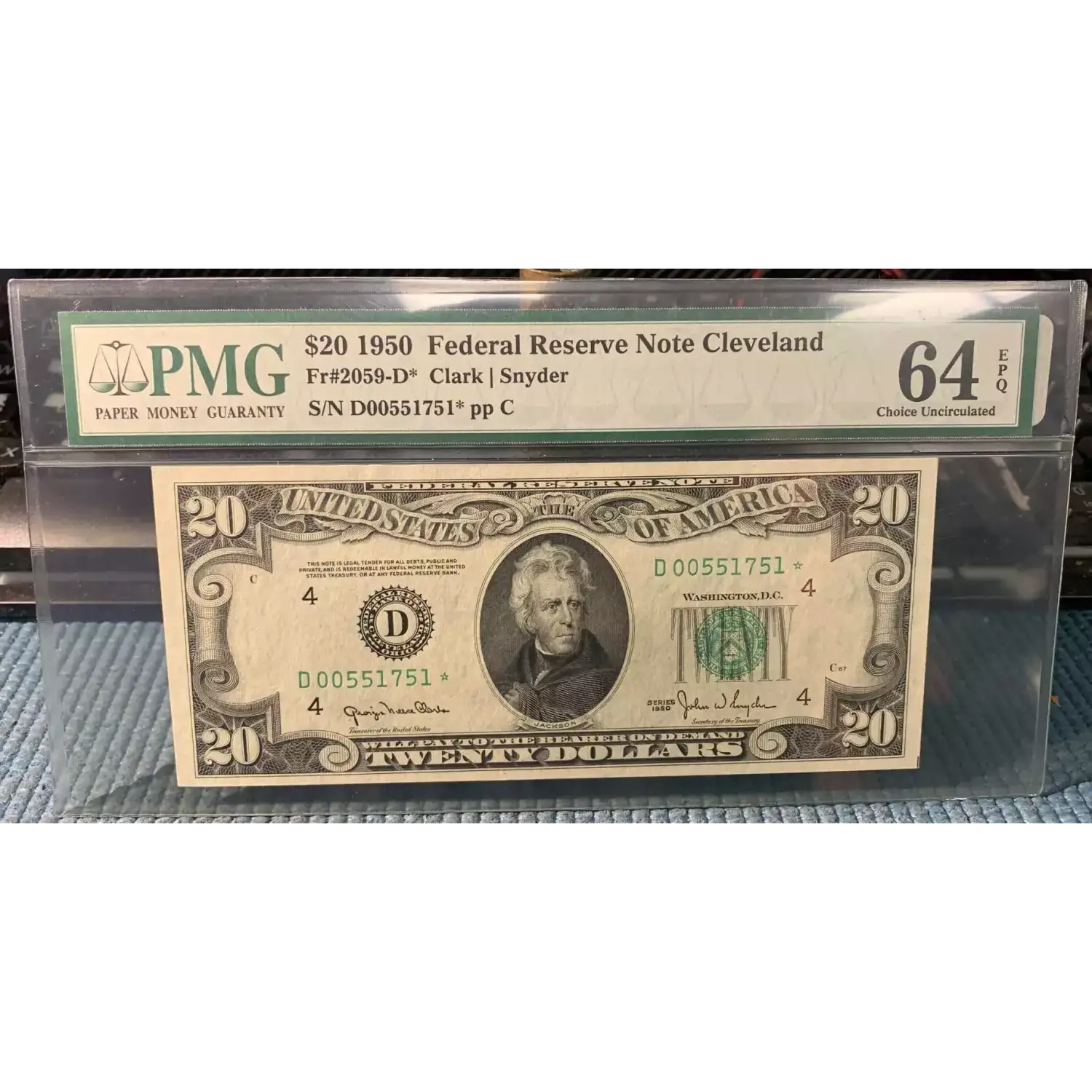 $20 1950 blue-Green seal. Small Size $20 Federal Reserve Notes 2059-D*