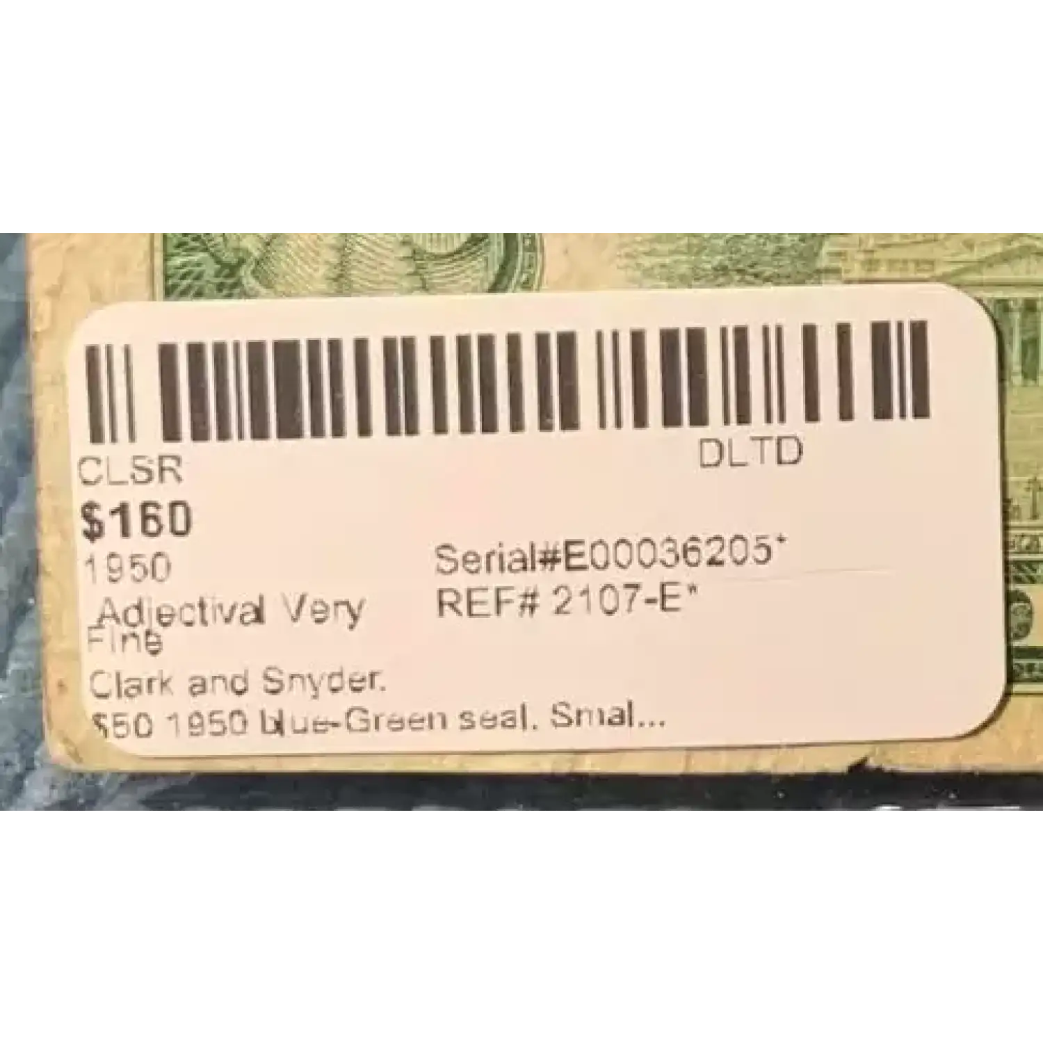 $50 1950 blue-Green seal. Small Size $50 Federal Reserve Notes 2107-E*