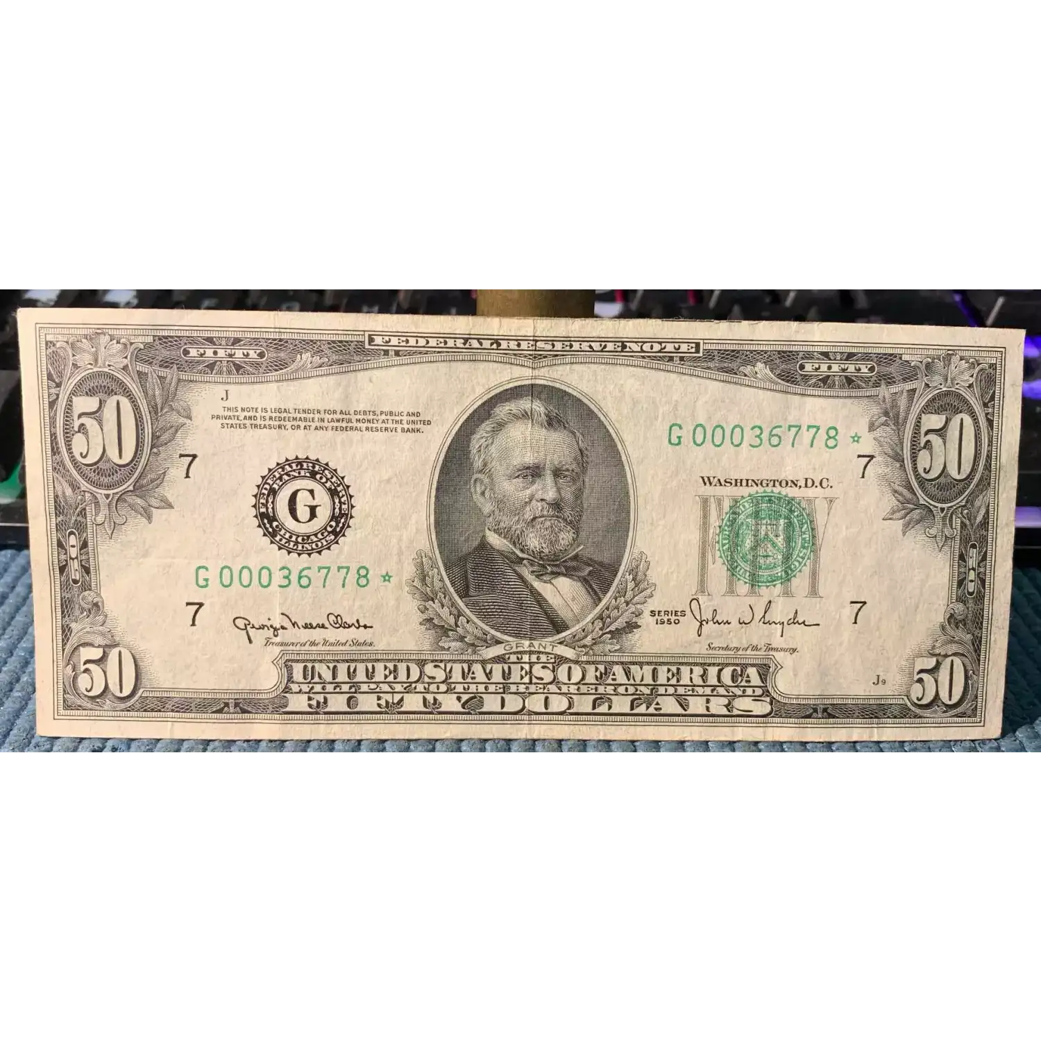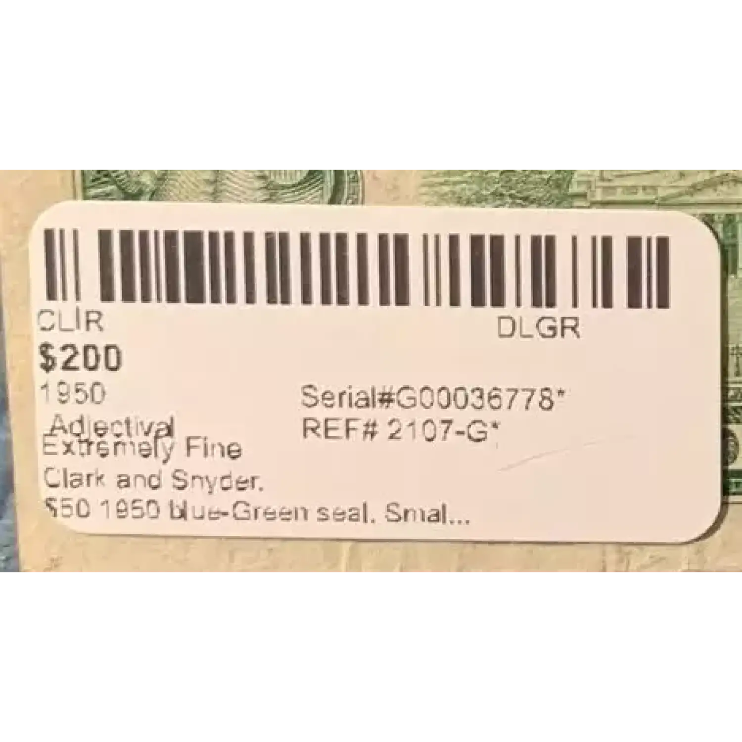$50 1950 blue-Green seal. Small Size $50 Federal Reserve Notes 2107-G*