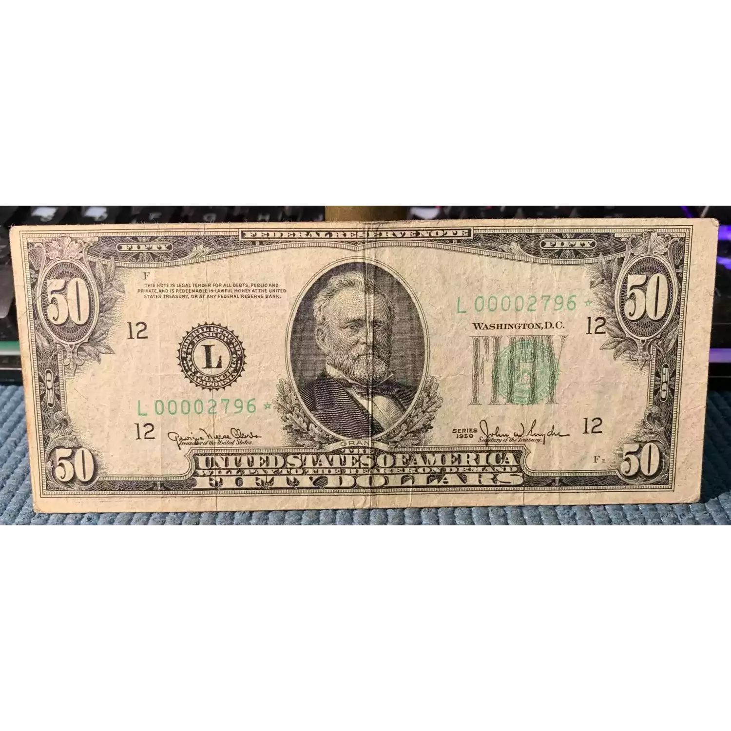 $50 1950 blue-Green seal. Small Size $50 Federal Reserve Notes 2107-L*
