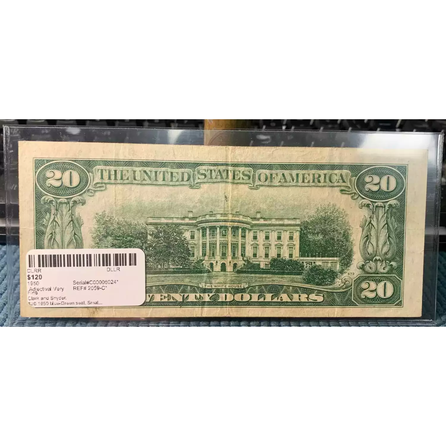 $20 1950 blue-Green seal. Small Size $20 Federal Reserve Notes 2059-C*