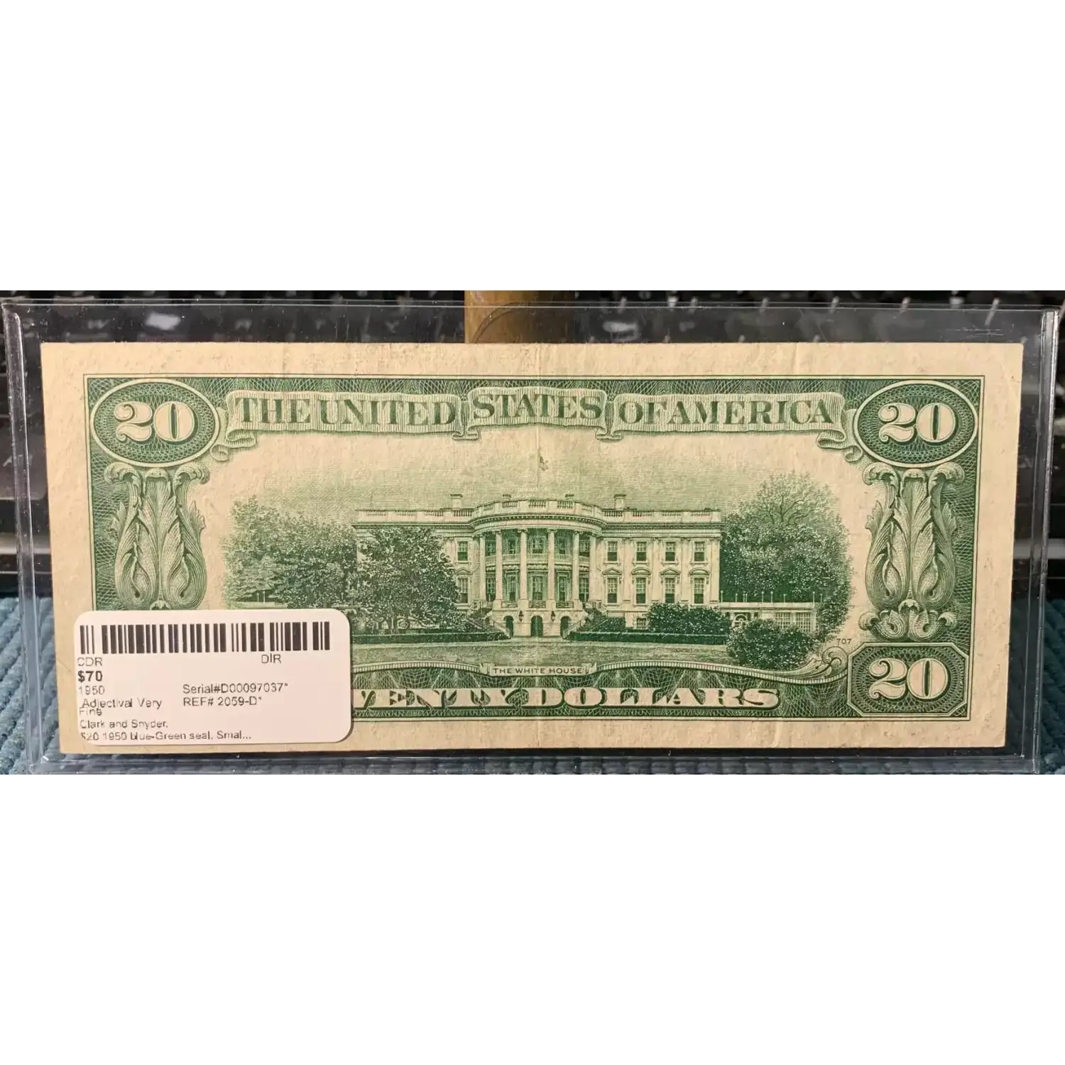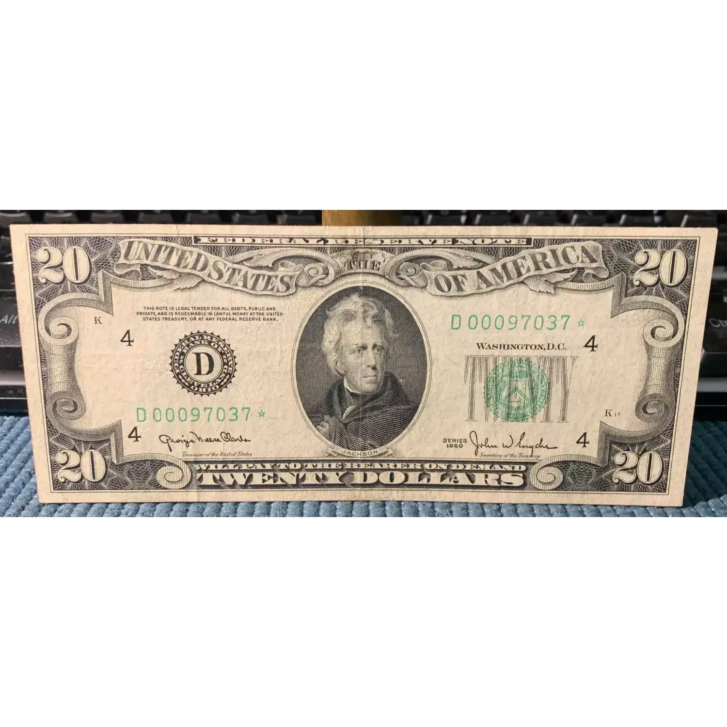 $20 1950 blue-Green seal. Small Size $20 Federal Reserve Notes 2059-D*