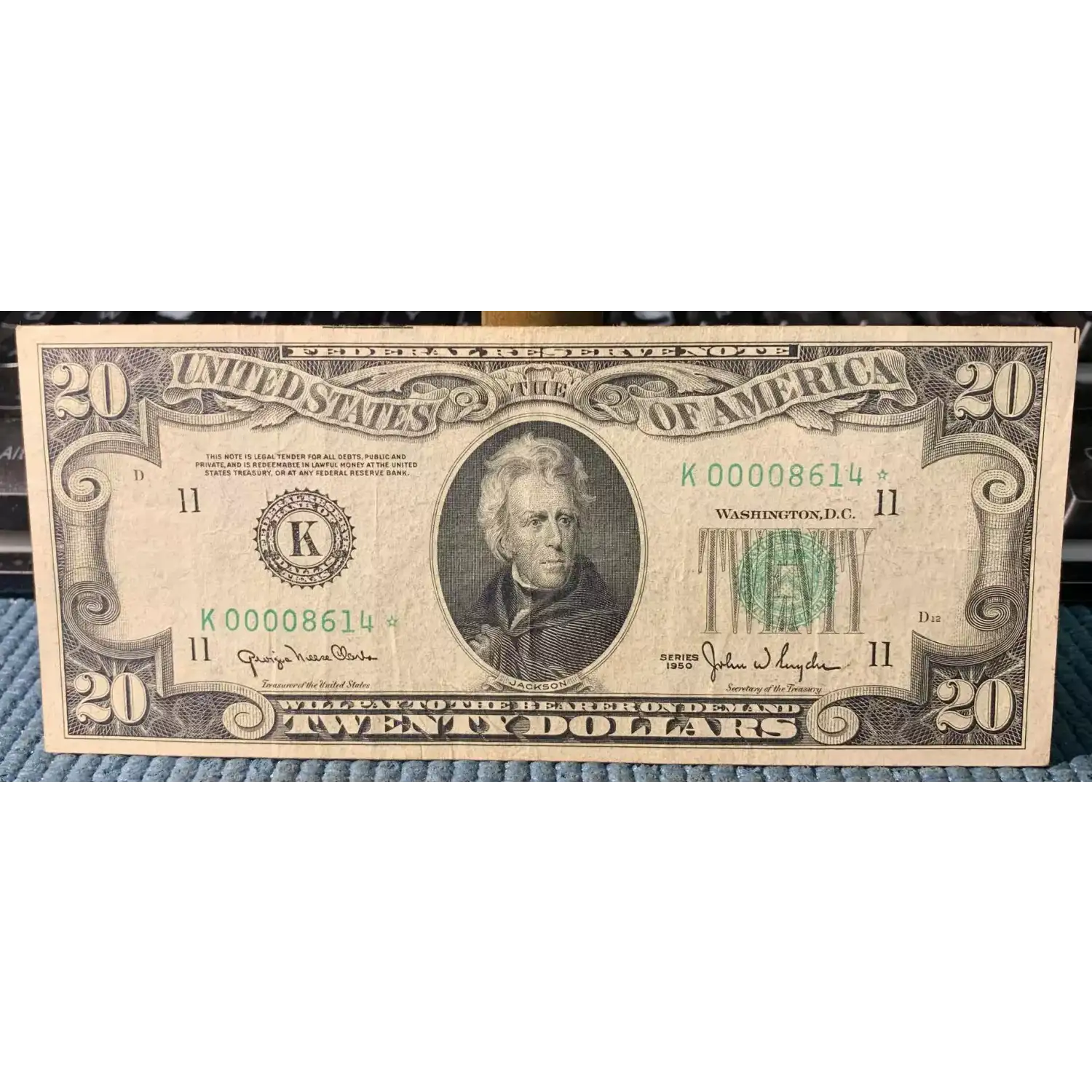 $20 1950 blue-Green seal. Small Size $20 Federal Reserve Notes 2059-K*