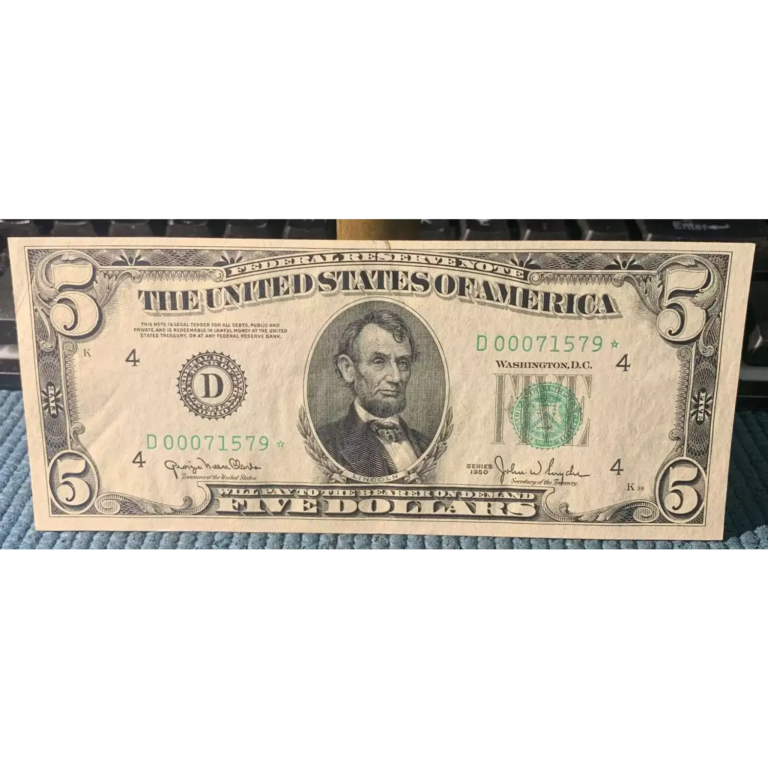 $5 1950 blue-Green seal. Small Size $5 Federal Reserve Notes 1961-D*
