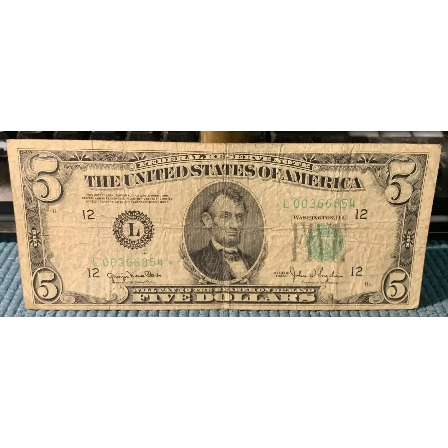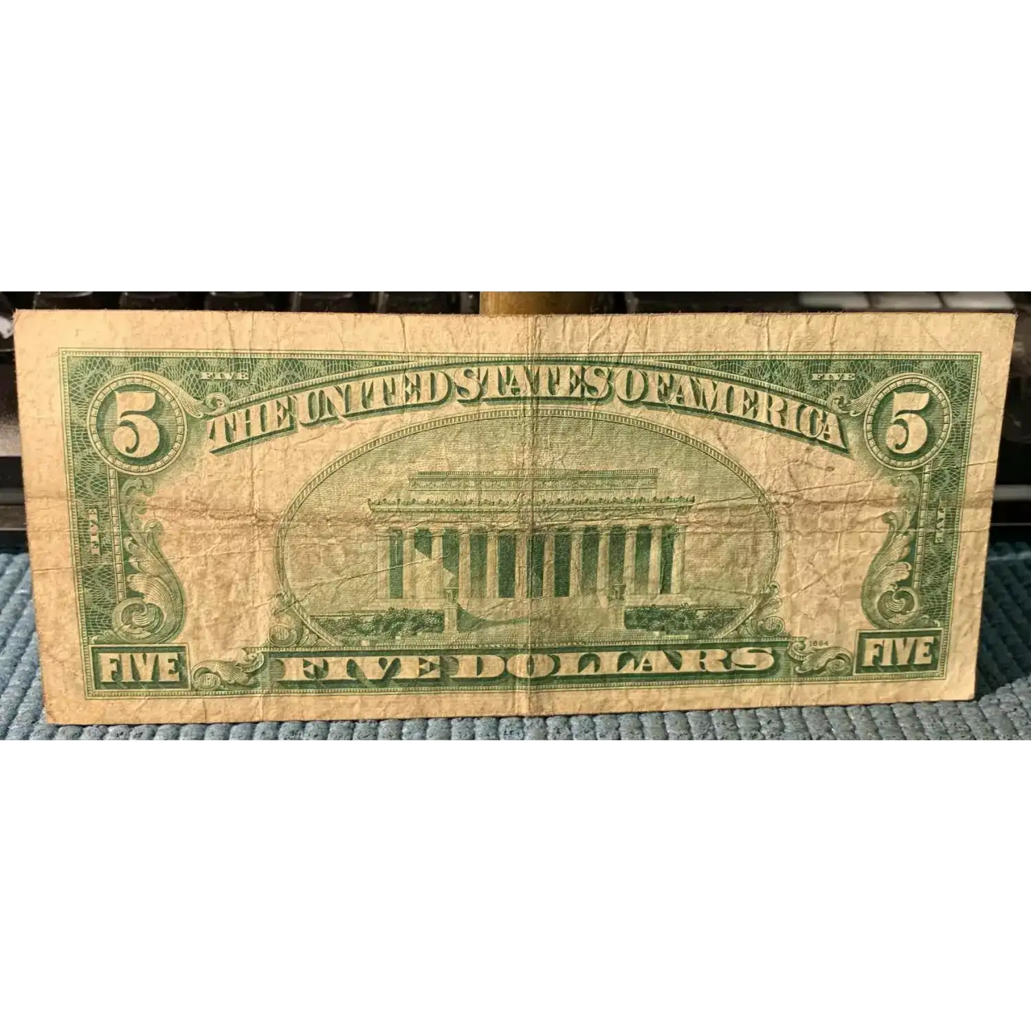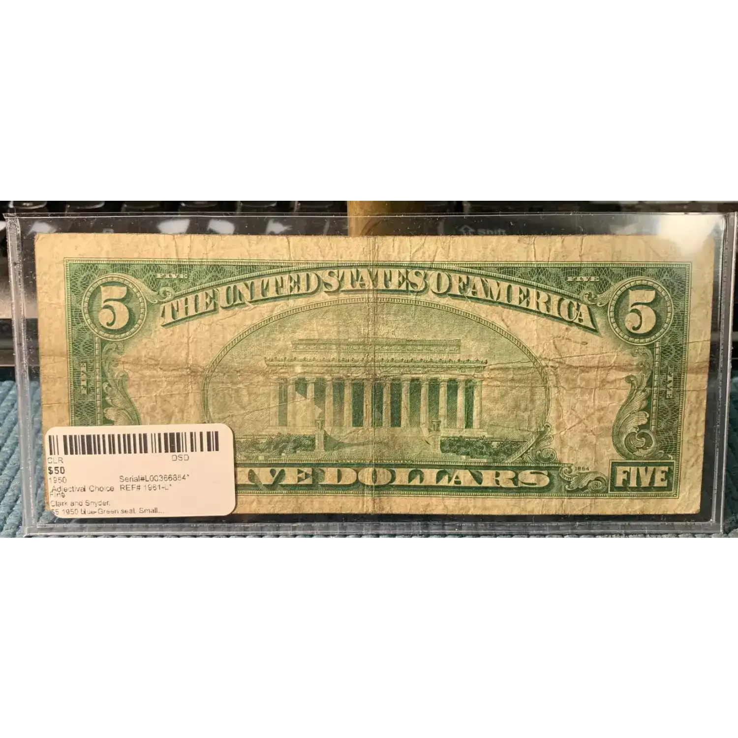 $5 1950 blue-Green seal. Small Size $5 Federal Reserve Notes 1961-L*