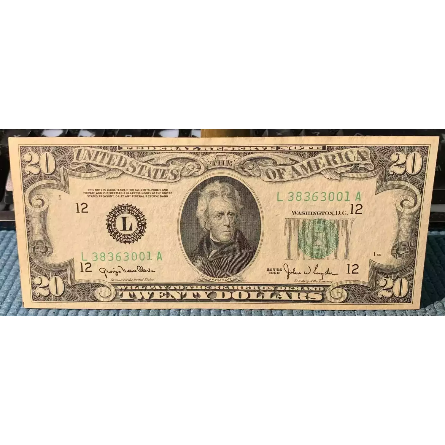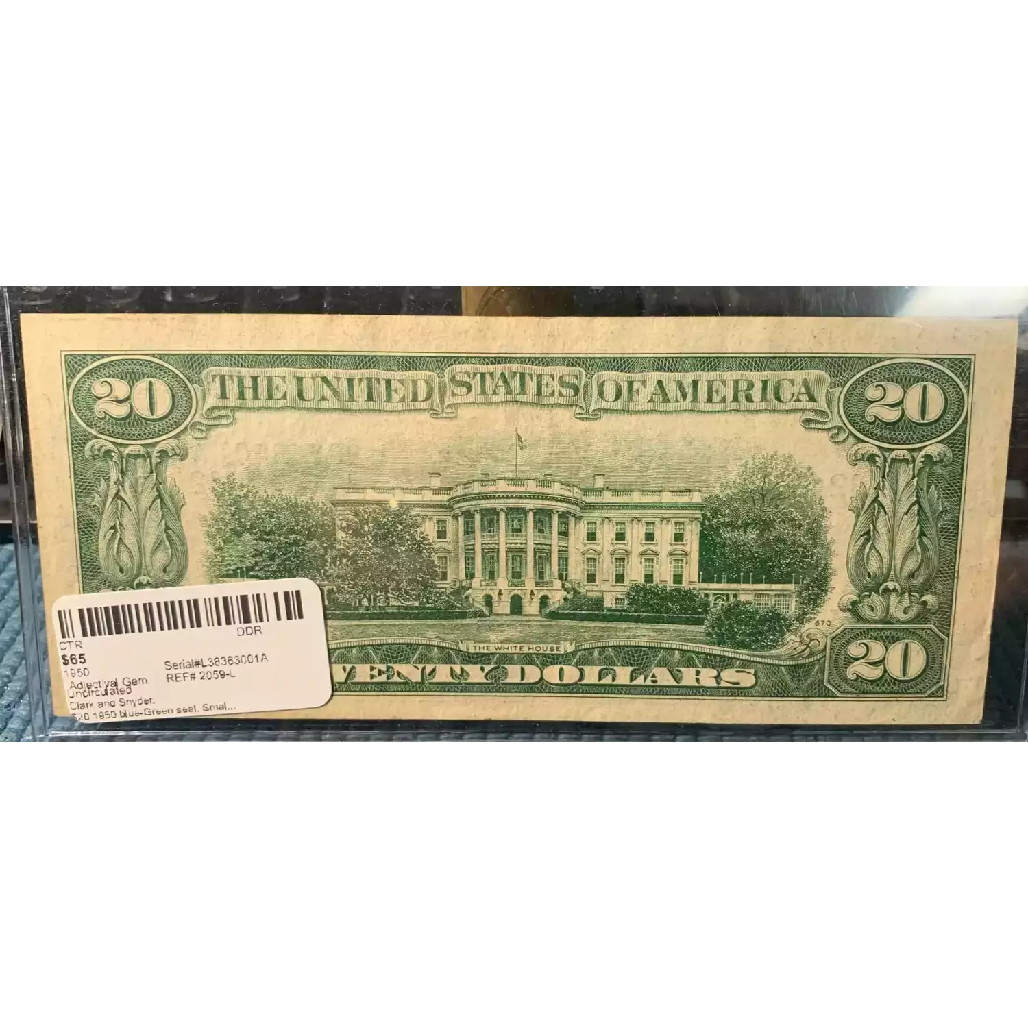 $20 1950 blue-Green seal. Small Size $20 Federal Reserve Notes 2059-L
