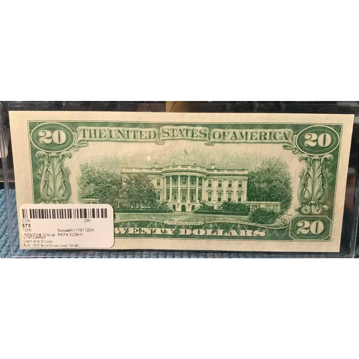$20 1950 blue-Green seal. Small Size $20 Federal Reserve Notes 2059-A