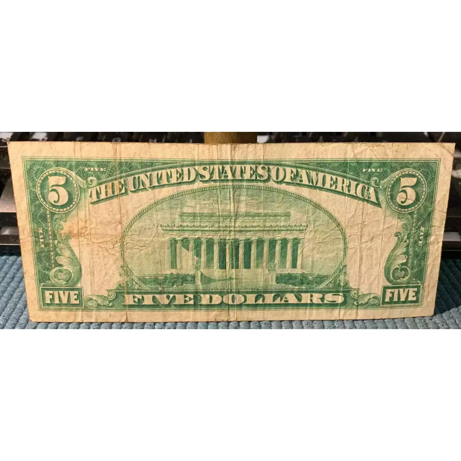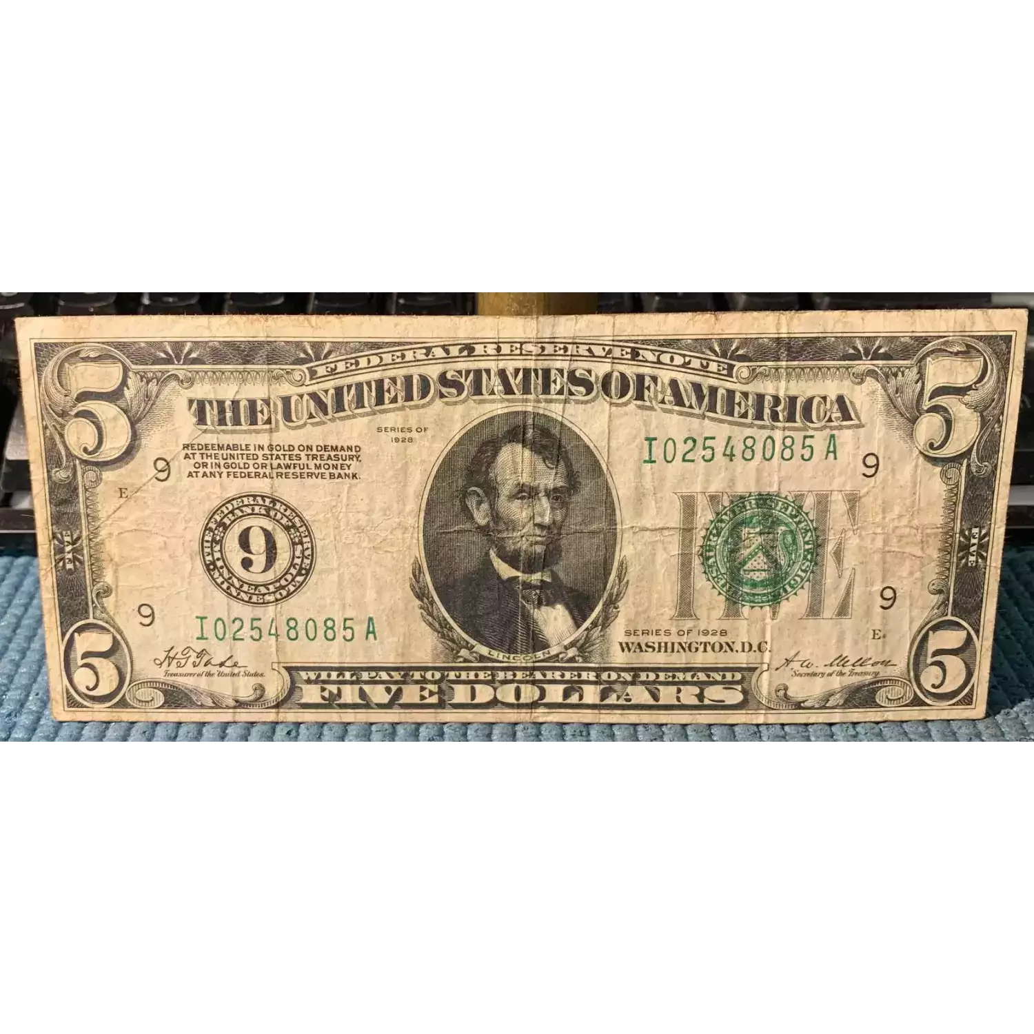 $5 1928 Green seal Small Size $5 Federal Reserve Notes 1950-I