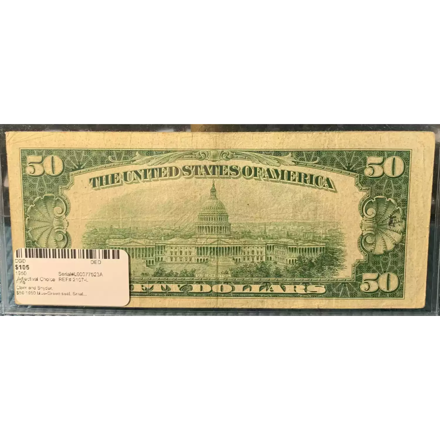 $50 1950 blue-Green seal. Small Size $50 Federal Reserve Notes 2107-L