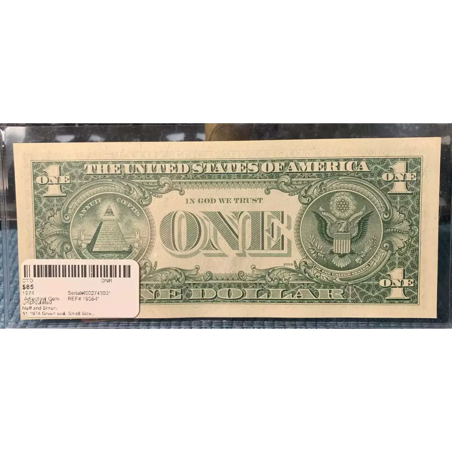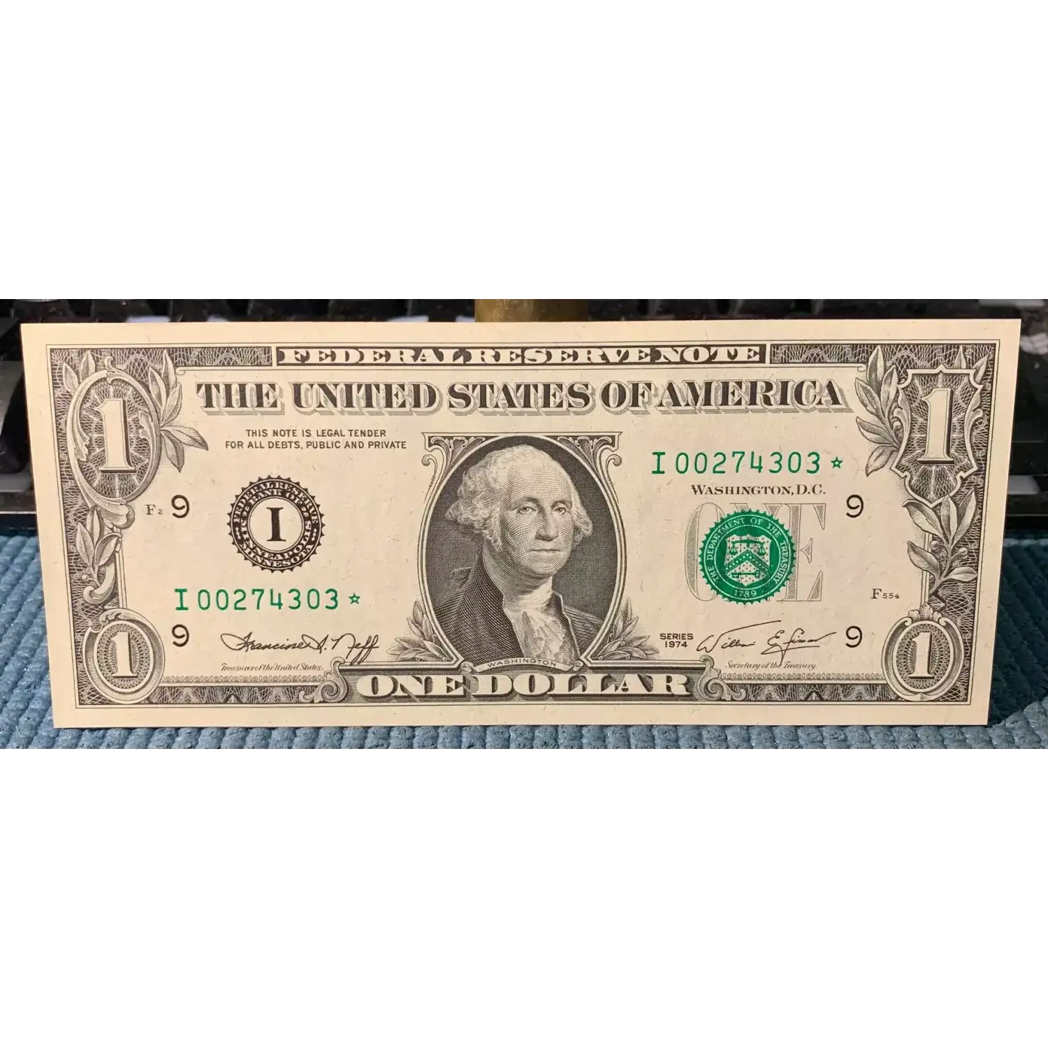 $1 1974 Green seal. Small Size $1 Federal Reserve Notes 1908-I*