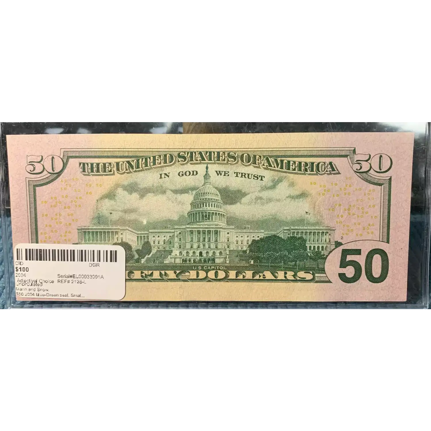 $50 2004 blue-Green seal. Small Size $50 Federal Reserve Notes 2128-L