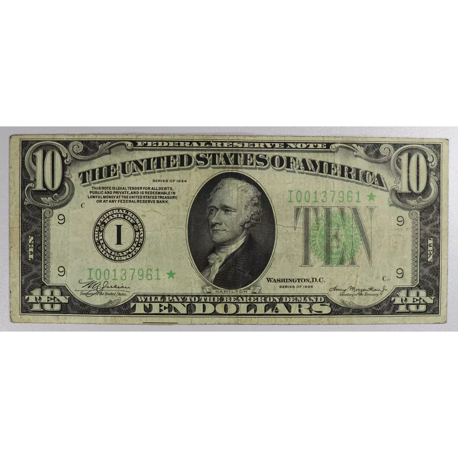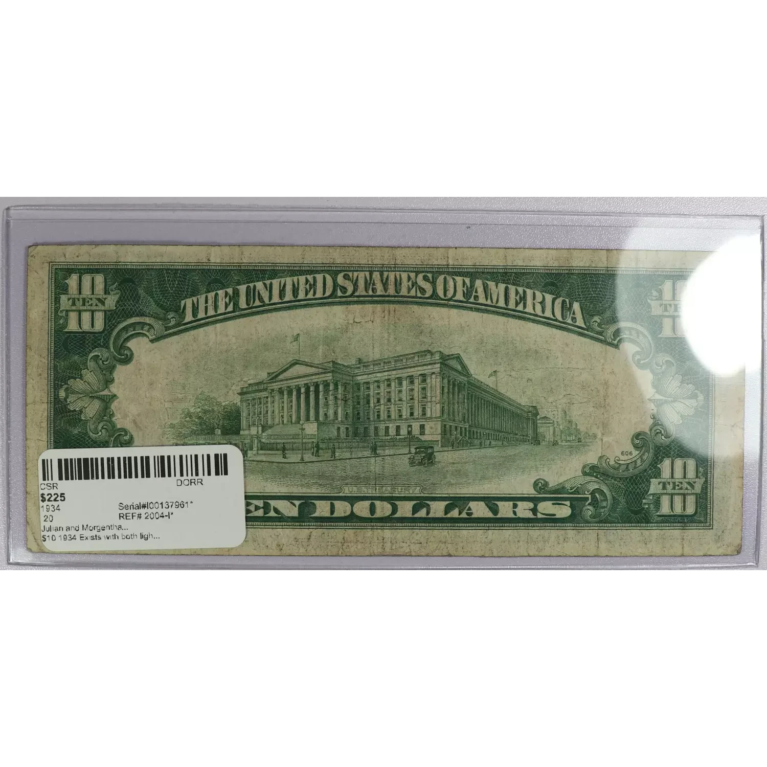 $10 1934 Exists with both light and dark Green seals Small Size $10 Federal Reserve Notes 2004-I*
