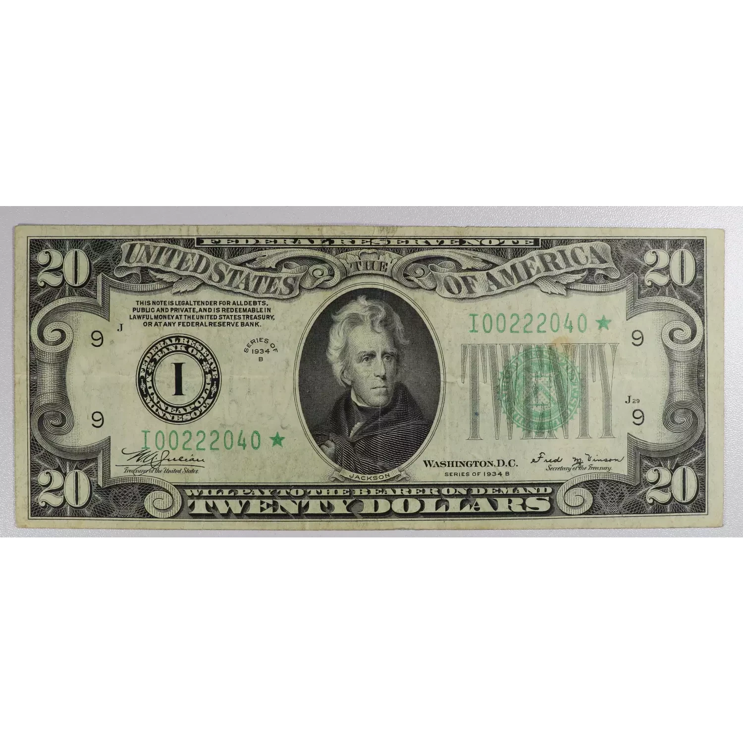 $20 1934-B. blue-Green seal. Small Size $20 Federal Reserve Notes 2056-I*