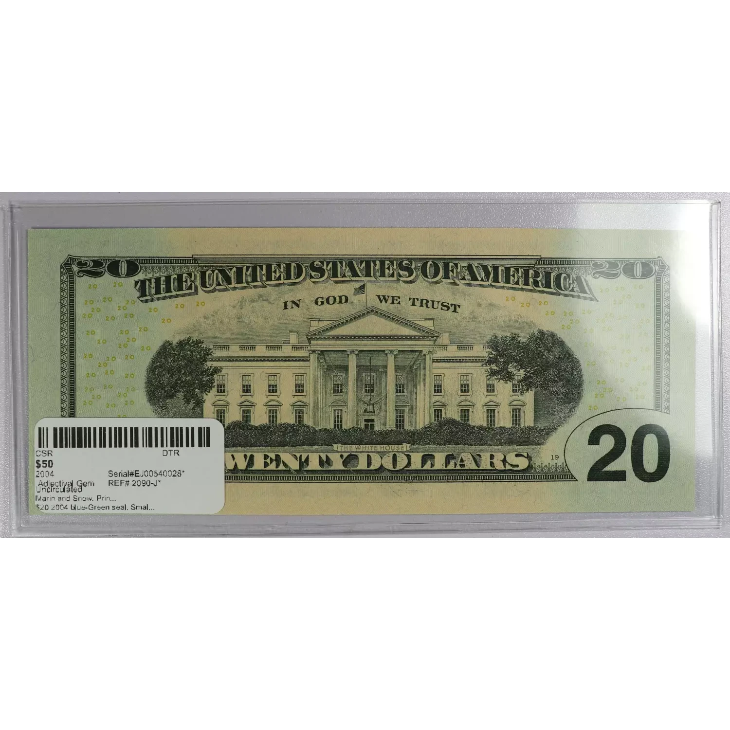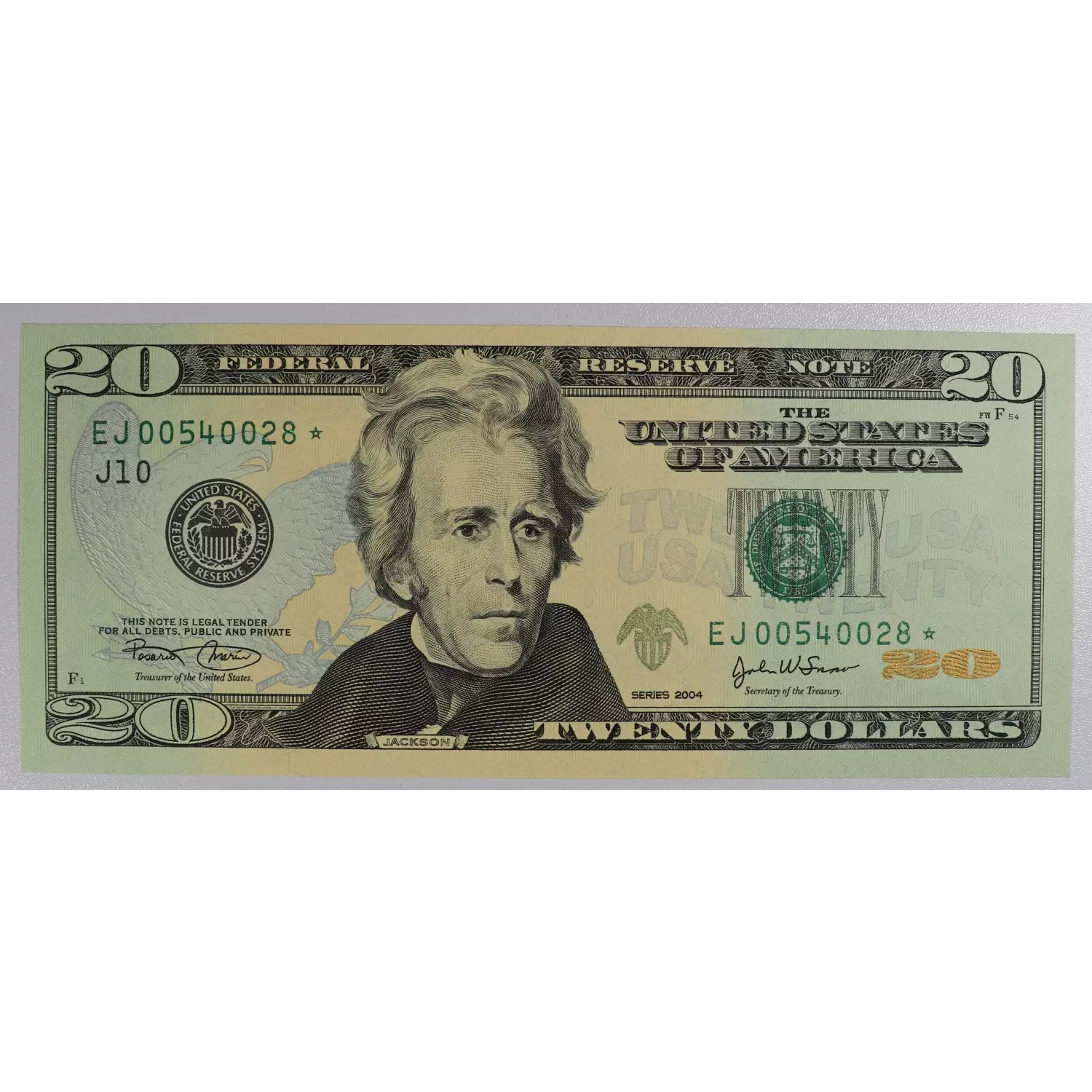 $20 2004 blue-Green seal. Small Size $20 Federal Reserve Notes 2090-J*