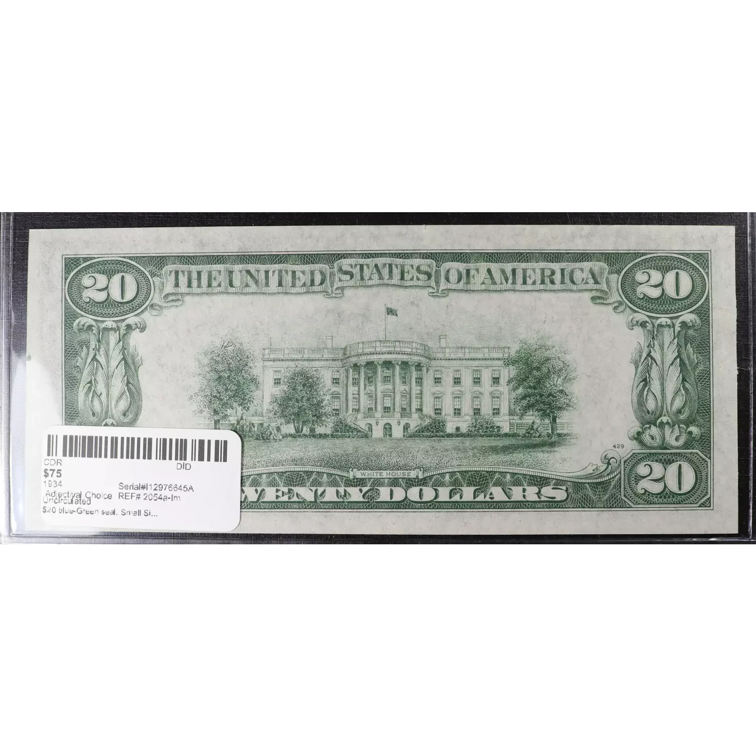 $20 blue-Green seal. Small Size $20 Federal Reserve Notes 2054a-Im