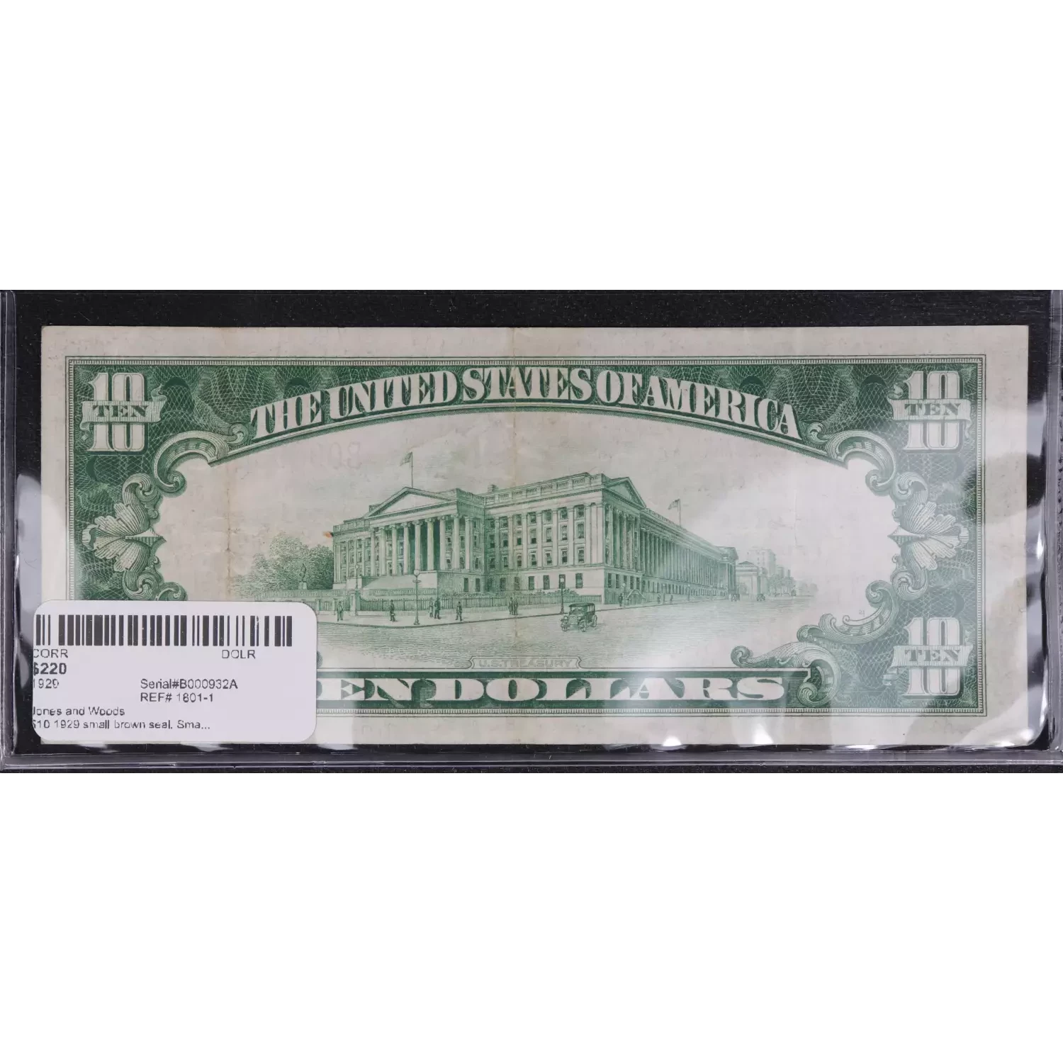 $10 1929 small brown seal. Small National Bank Notes 1801-1