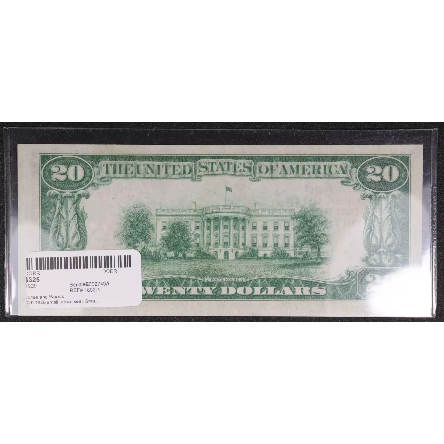 $20 1929 small brown seal. Small National Bank Notes 1802-1