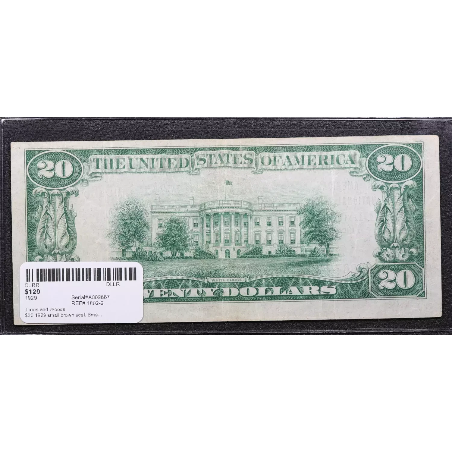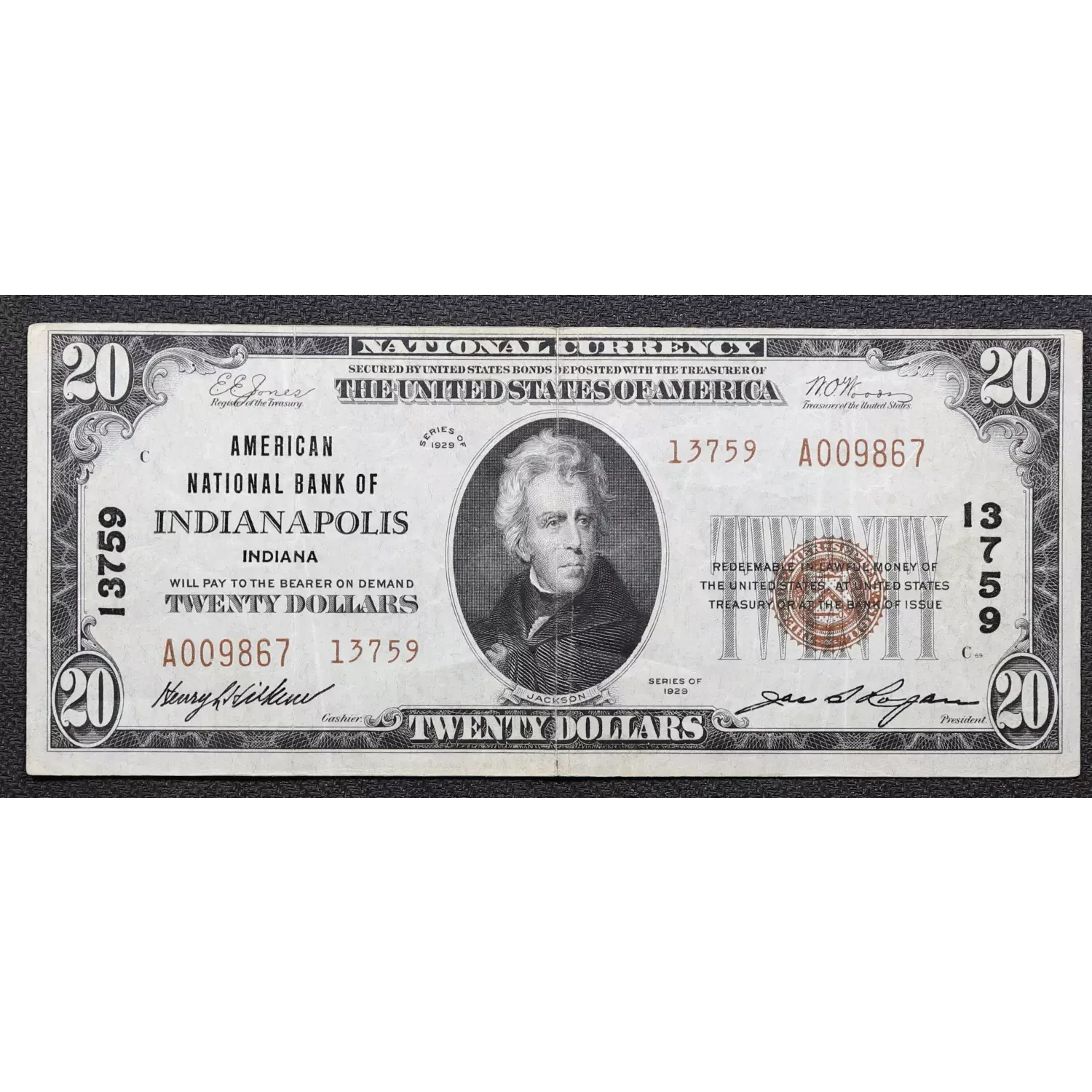 $20 1929 small brown seal. Small National Bank Notes 1802-2