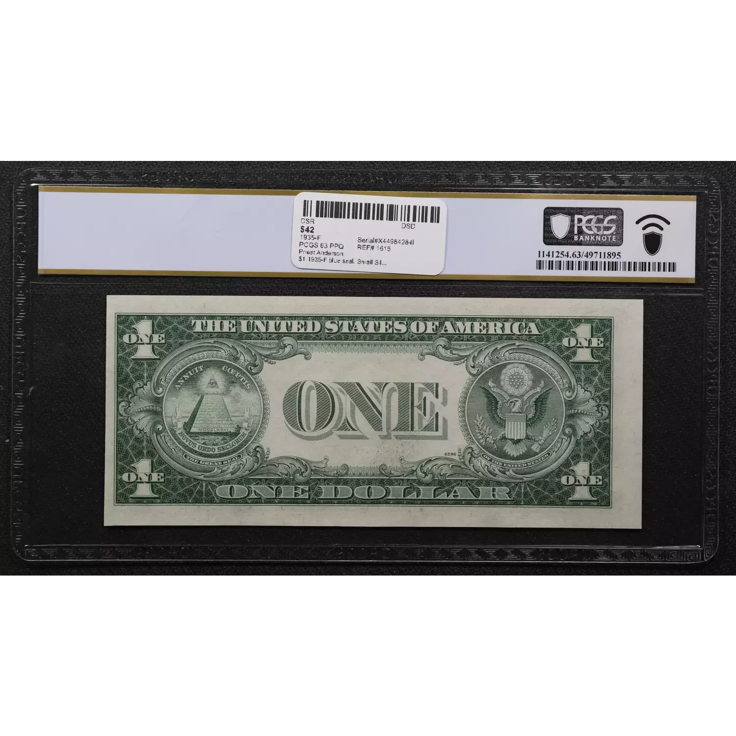 $1 1935-F blue seal. Small Silver Certificates 1615