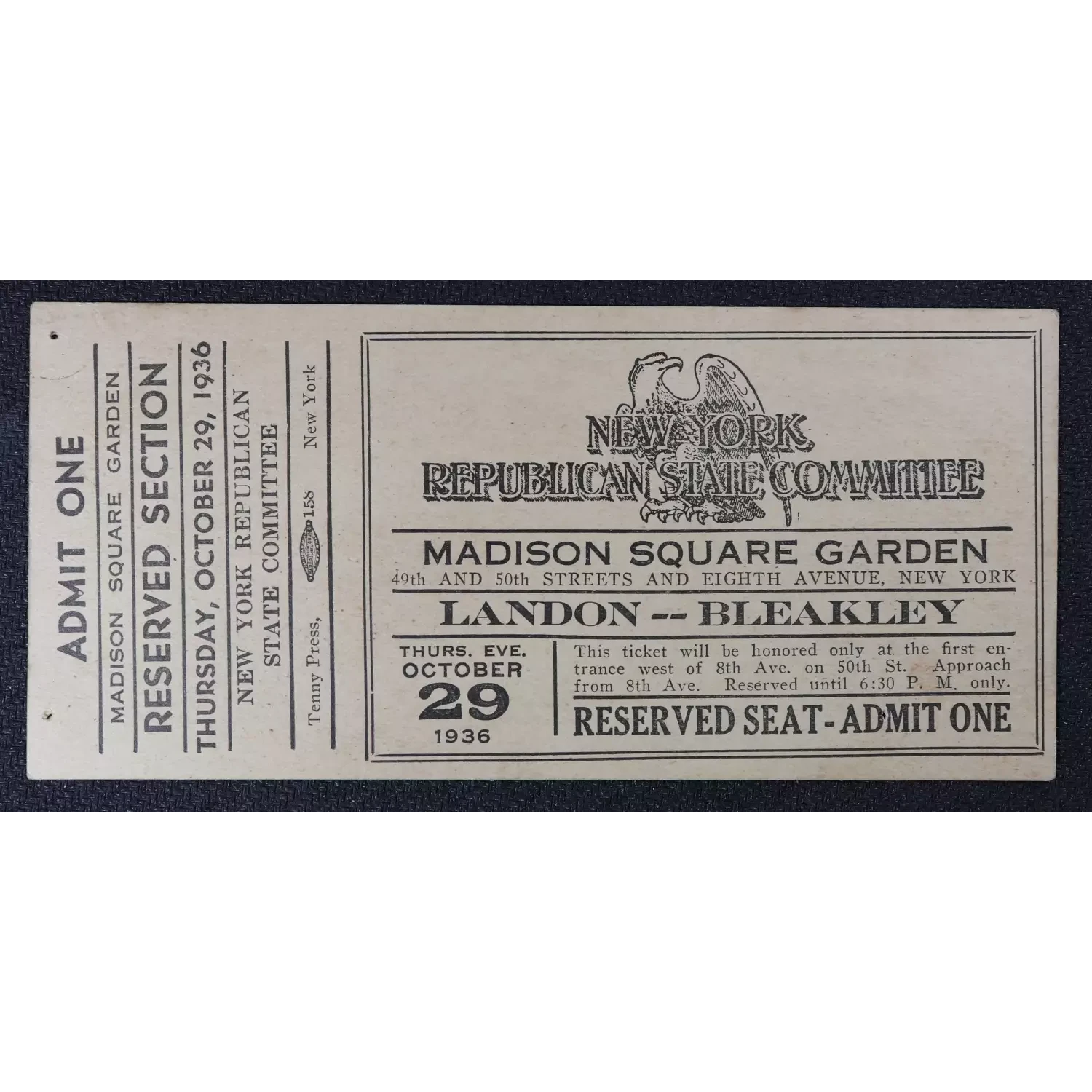 1936 New York Republican State Committee Reserved Ticket