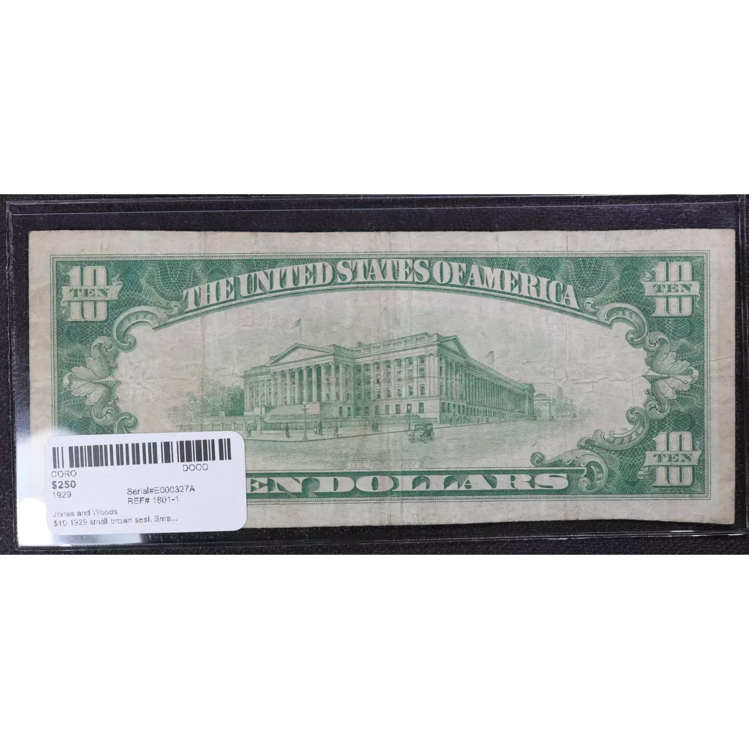$10 1929 small brown seal. Small National Bank Notes 1801-1