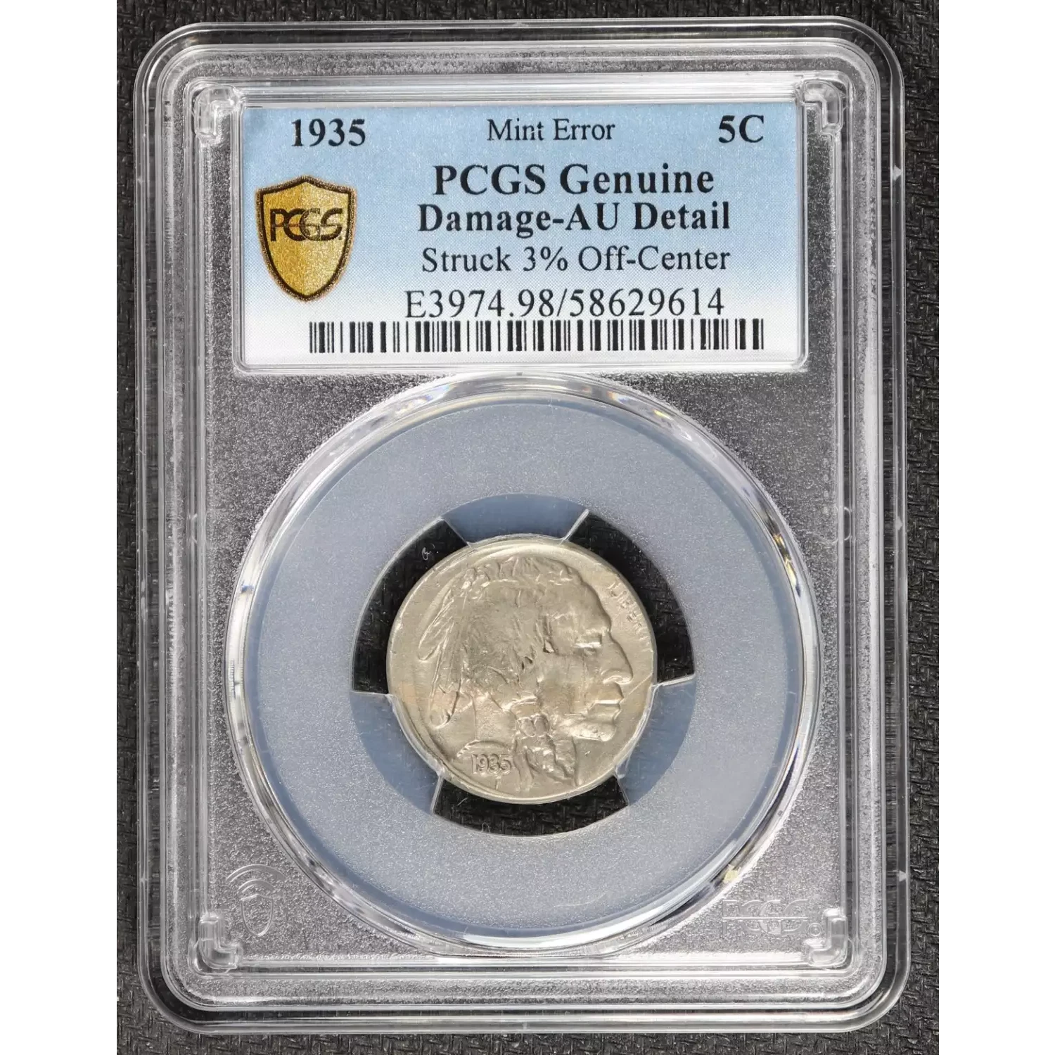 1935 Nickel Indian Head or Buffalo PCGS Genuine - AU Details (98 - Damage) Struck 3% Off Center